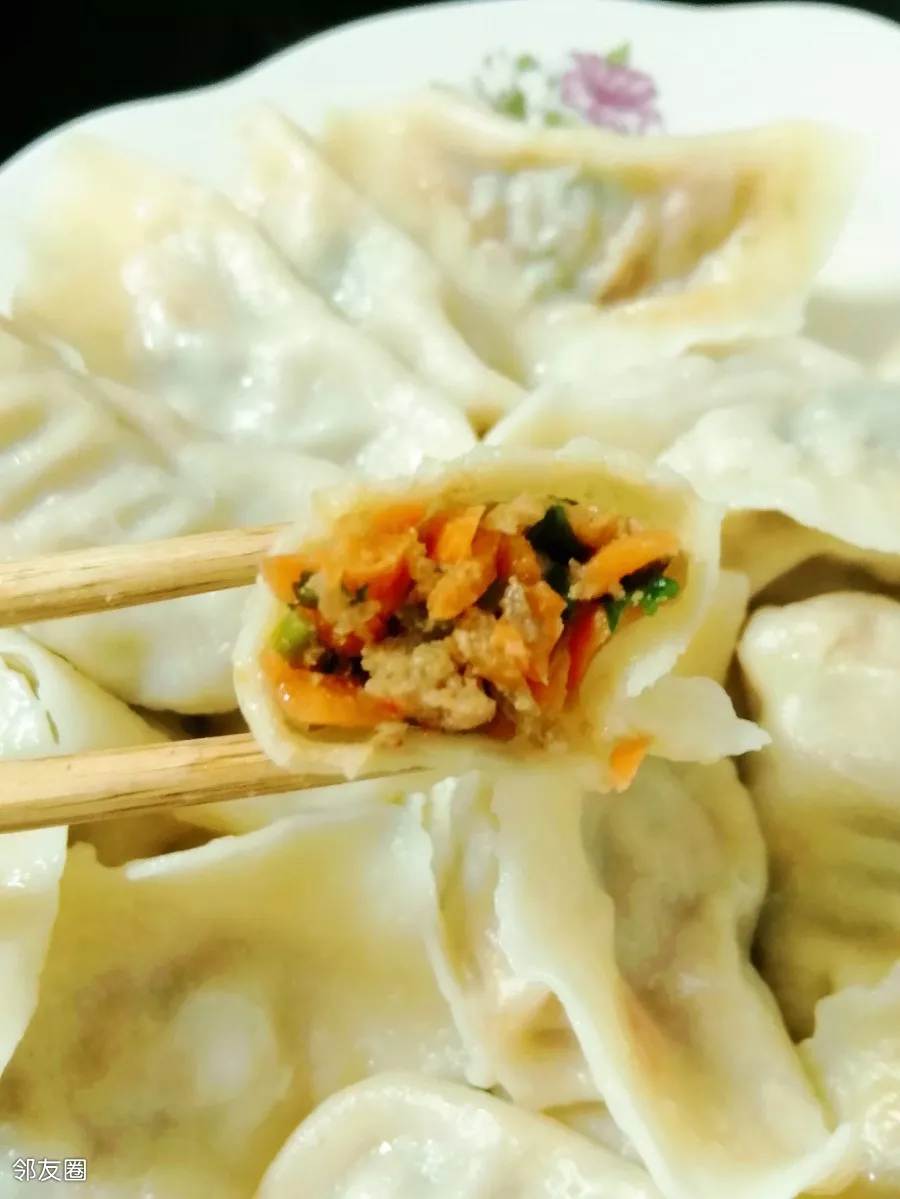 胡萝卜馅儿的也好吃,热乎乎的又吃撑啦!~