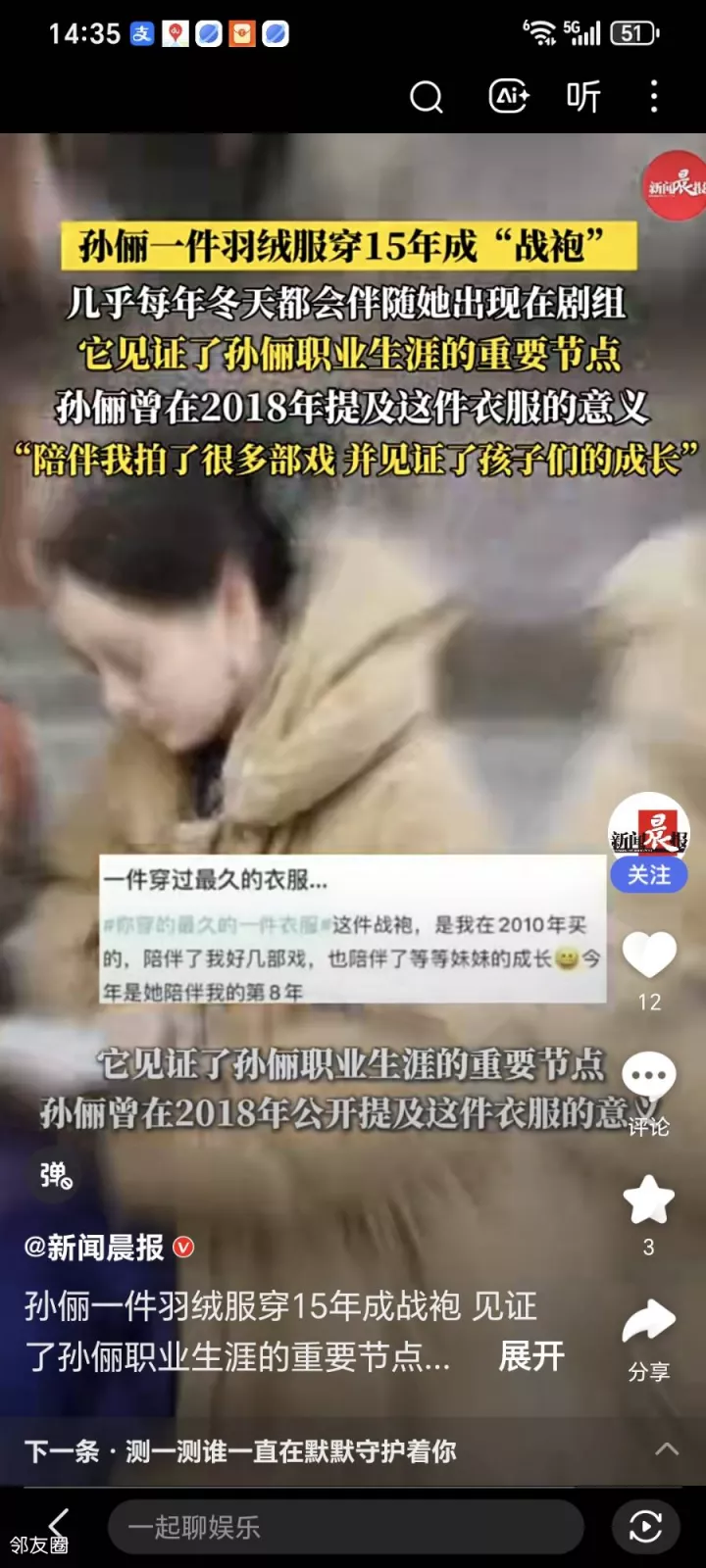 看孙俪说有一件她喜欢的羽绒服穿了十五年,我穿的最久的一件羽绒服大概五年,您穿的最久的一件羽绒服有几年?