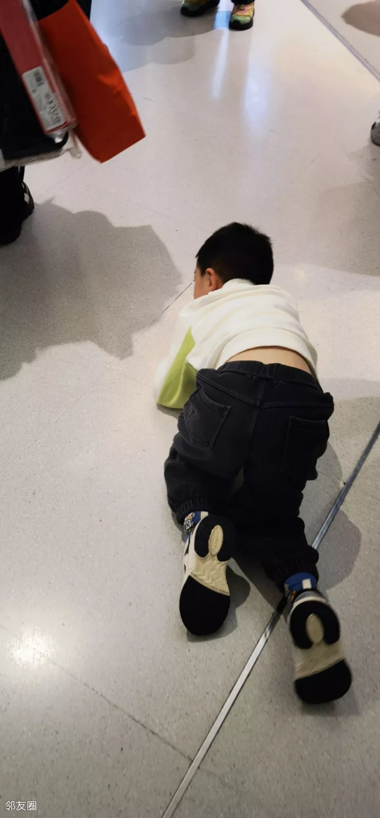 作为家长你会任由孩子在商场地上这么爬行吗