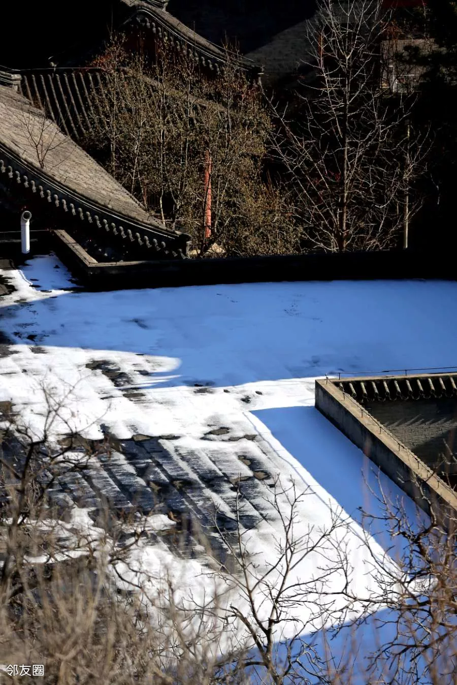 雪下完已经一周多了,到北宫的时候有些吃惊。向阳的地方,雪基本上没了。但背阴处雪,还挺多。难道比城里下得大?