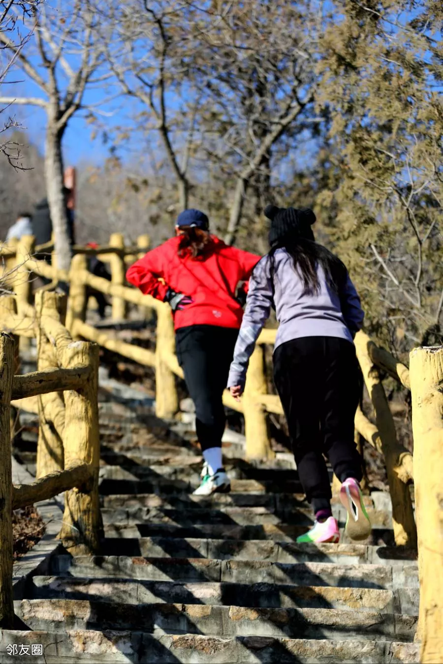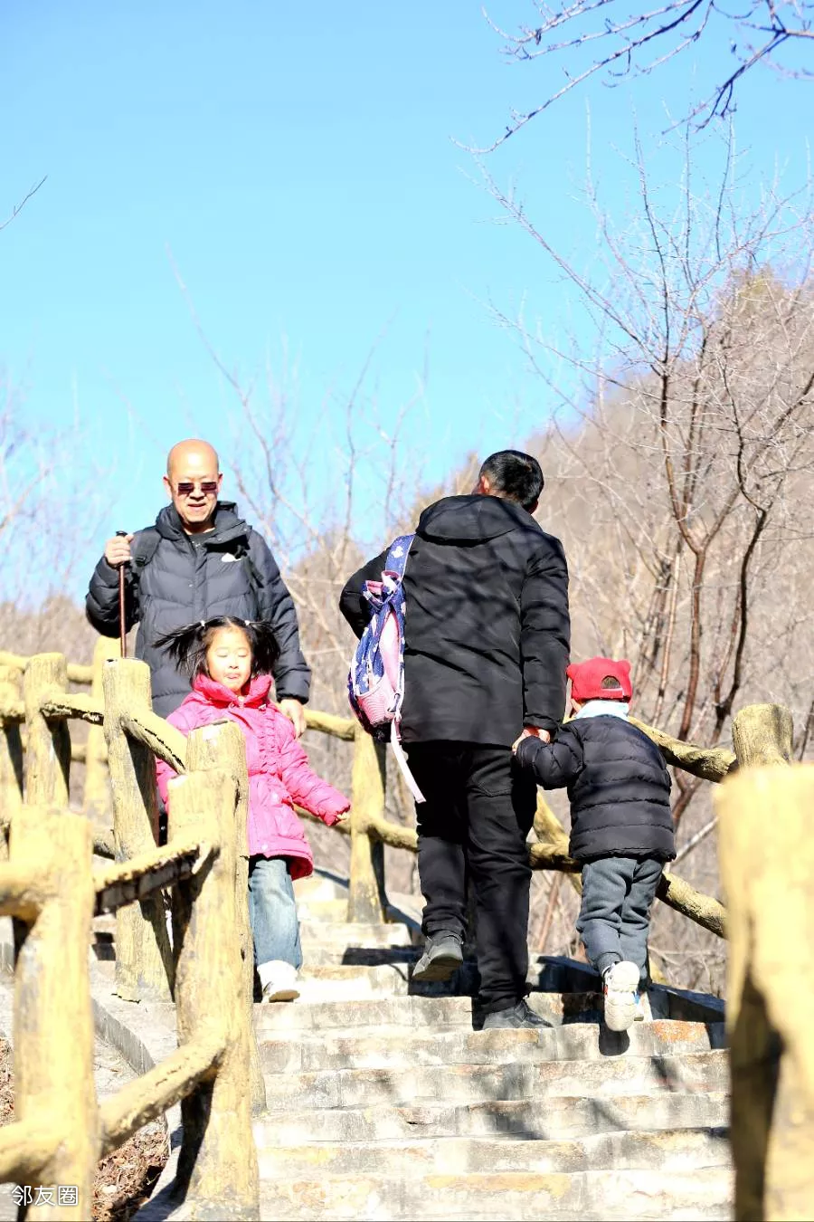 小朋友们纷纷来凑热闹。戴红帽子的小男孩才三岁,八百多级台阶愣是没让他爸抱,腻害