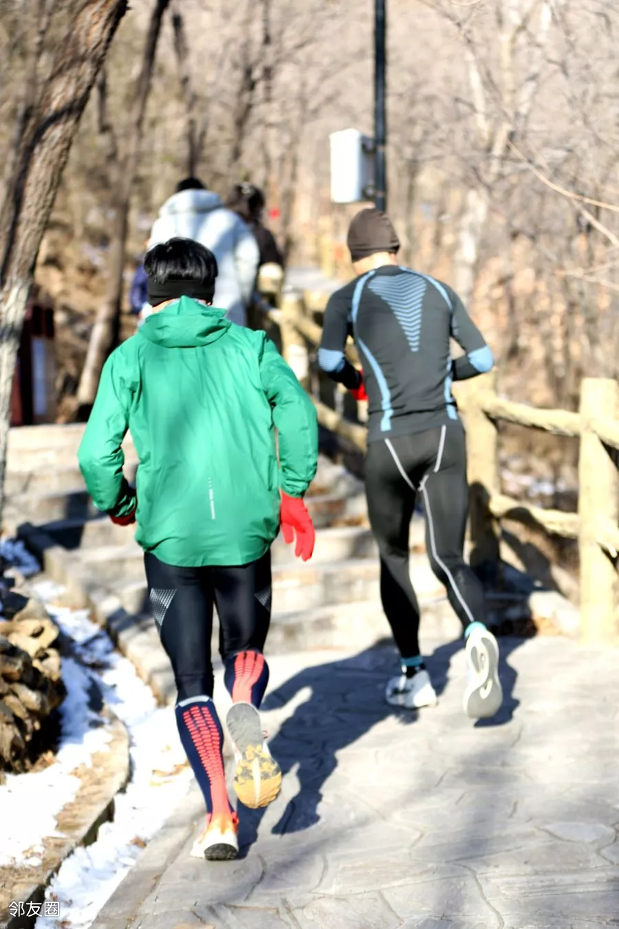 公园里正在举行一场登山赛事,参赛选手在跑步登山