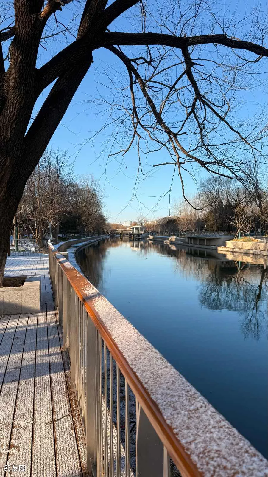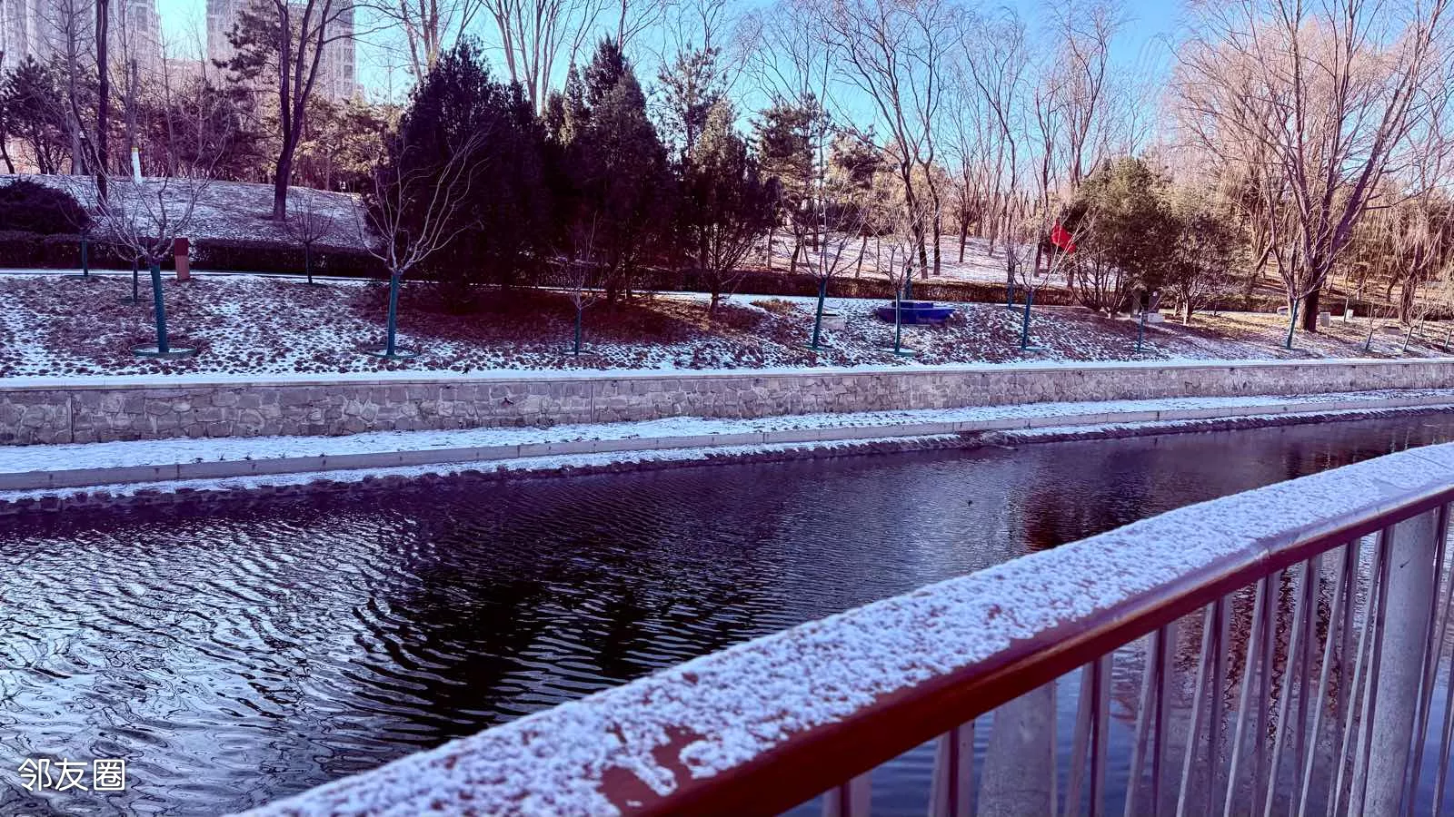 今晨小雪粘性很强,薄薄的雪花,紧贴着地面,留下雪的印记。