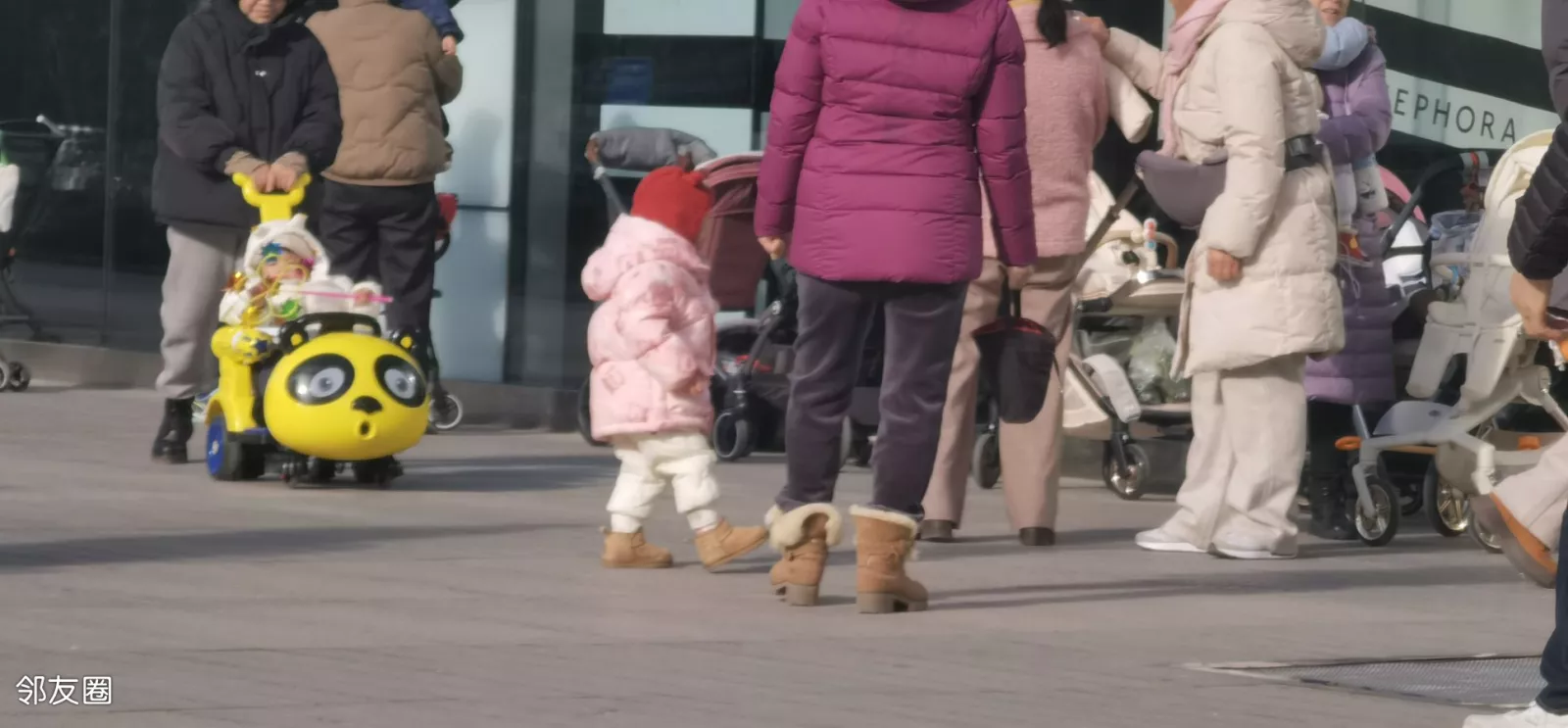 上午没什么风,一群爷爷奶奶姥姥姥爷在大厦门前溜娃,娃娃车一溜排开停放着,热闹非凡啊!