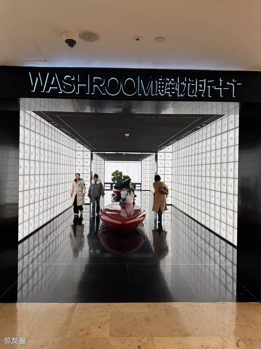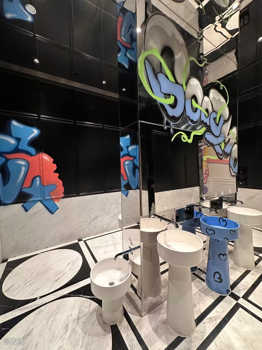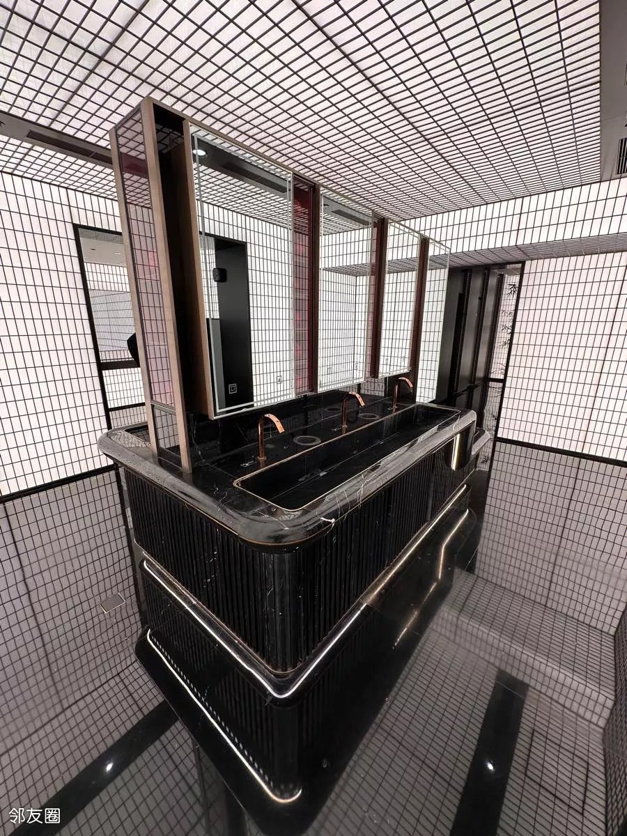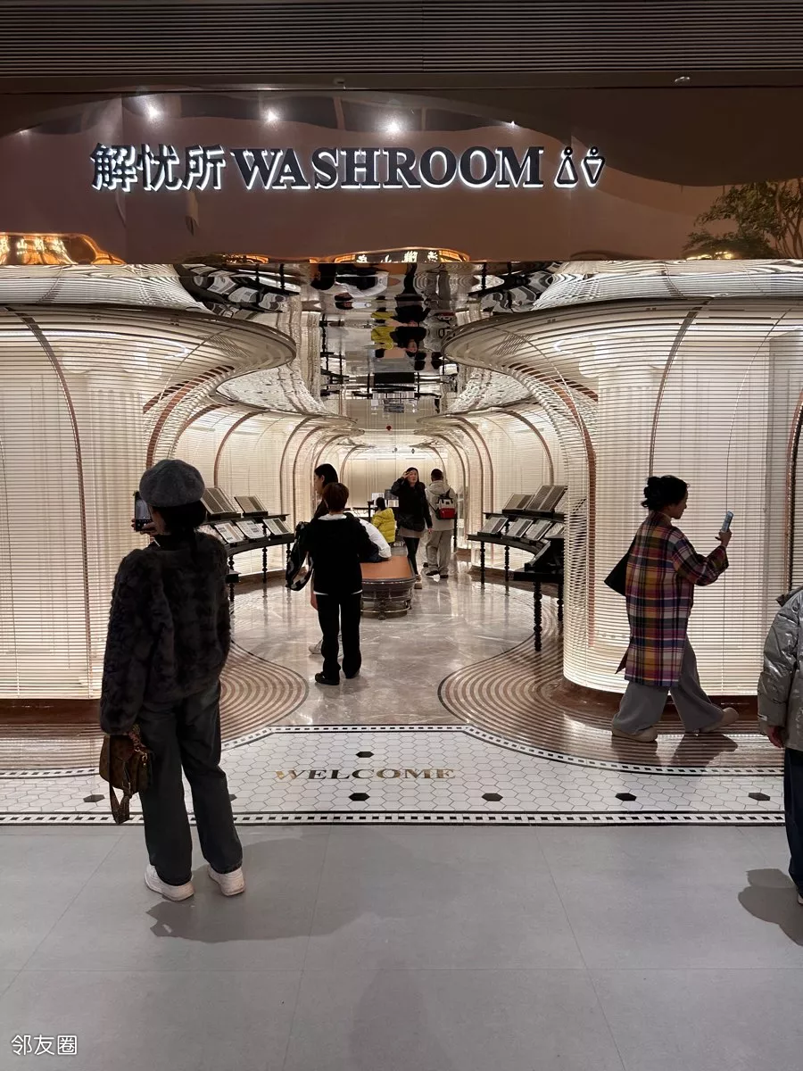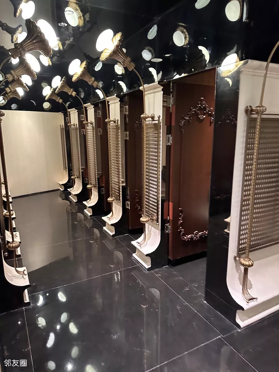 踏入德基广场的洗手间,寻常公厕印象被瞬间击碎:琉璃穹顶垂下水晶瀑布,空气萦绕高级香氛;每个隔间宛若独立艺术装置,智能马桶与金色龙头闪烁冷光。人们举手机拍照,在理石镜廊前驻足——这里奢华得不留余地,将“如厕”升华为一场感官奇旅,被戏称为“耗资千万的公厕天花板”。