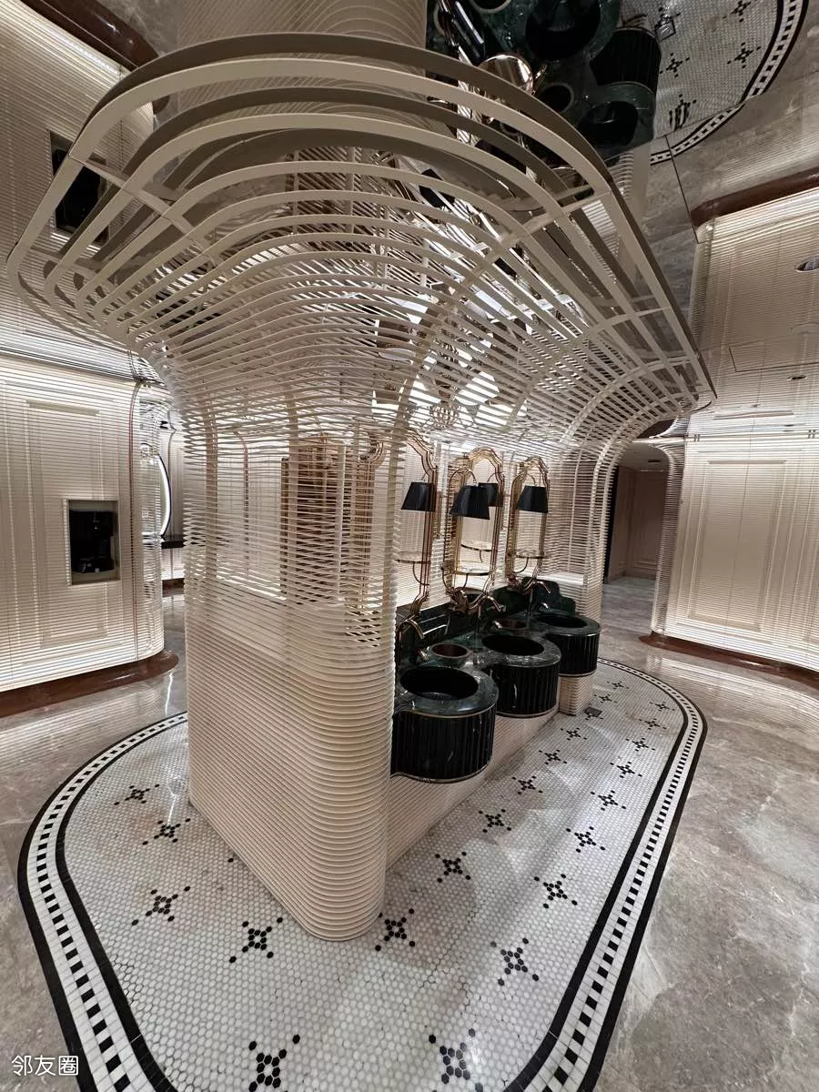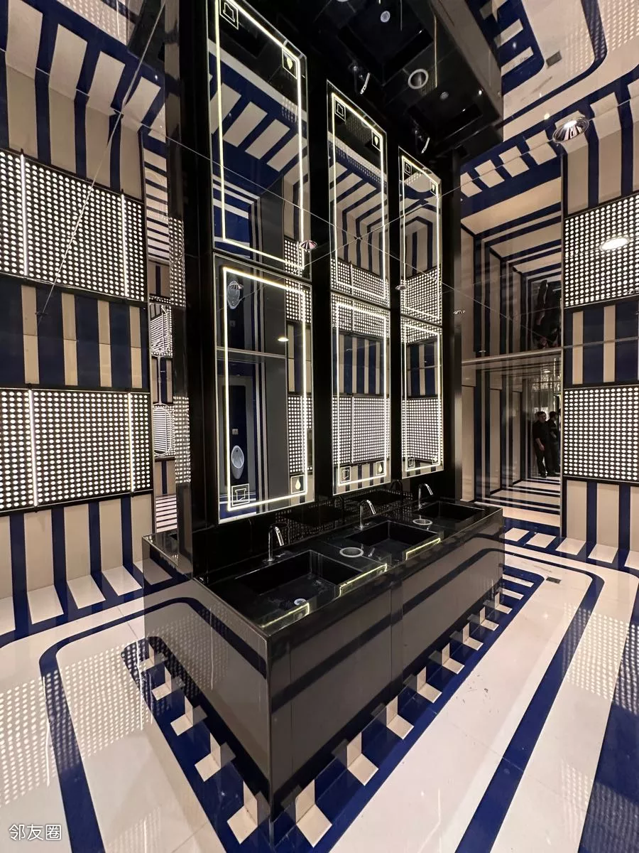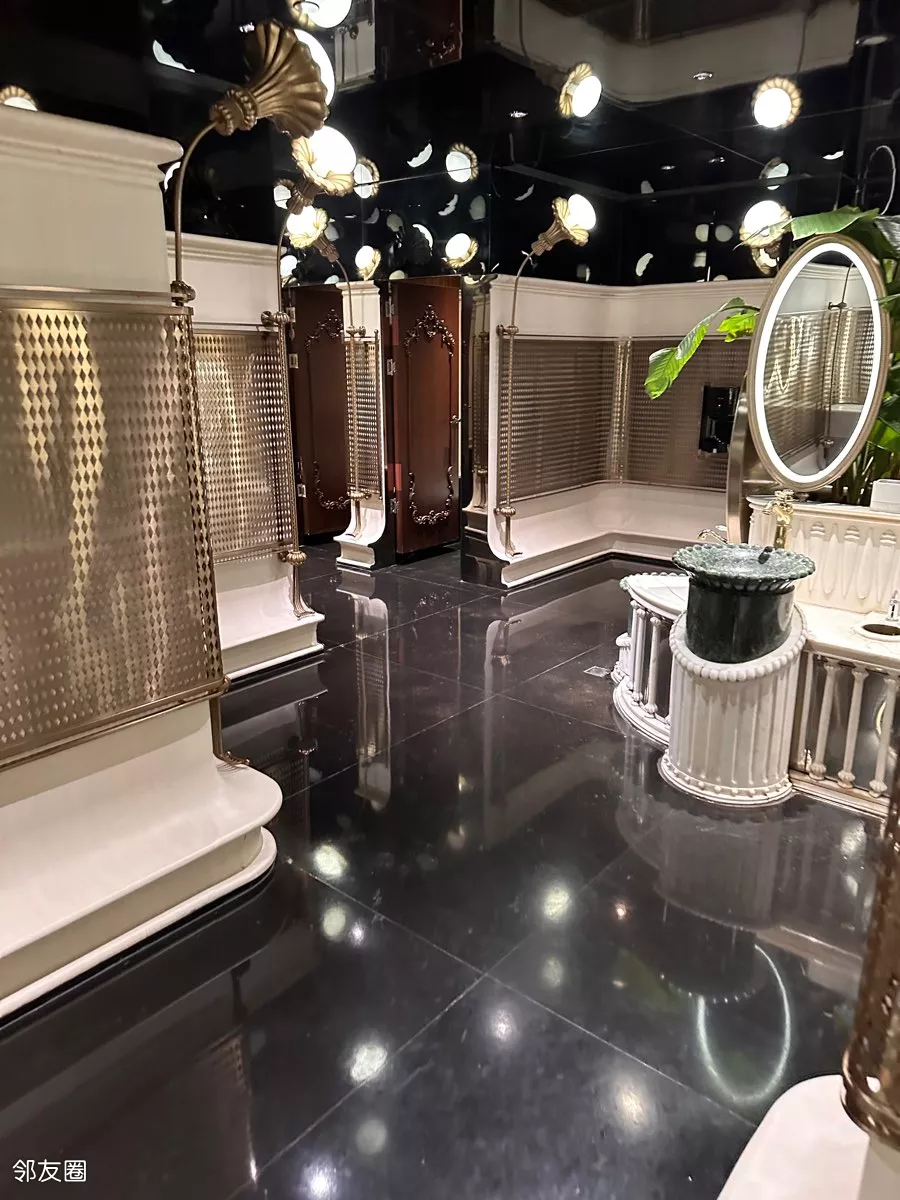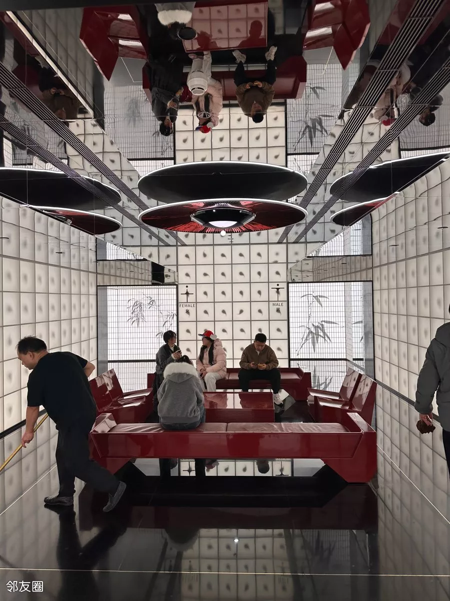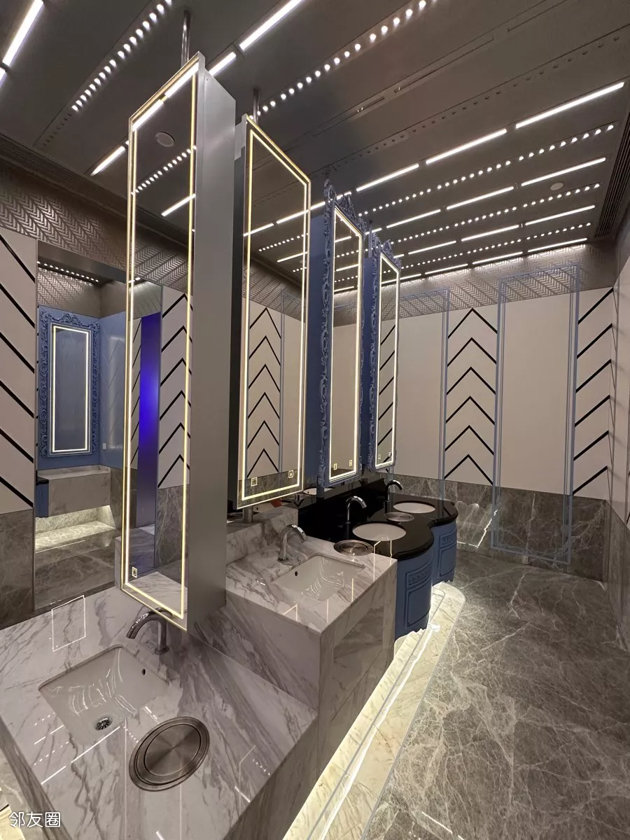 踏入德基广场的洗手间,寻常公厕印象被瞬间击碎:琉璃穹顶垂下水晶瀑布,空气萦绕高级香氛;每个隔间宛若独立艺术装置,智能马桶与金色龙头闪烁冷光。人们举手机拍照,在理石镜廊前驻足——这里奢华得不留余地,将“如厕”升华为一场感官奇旅,被戏称为“耗资千万的公厕天花板”。
