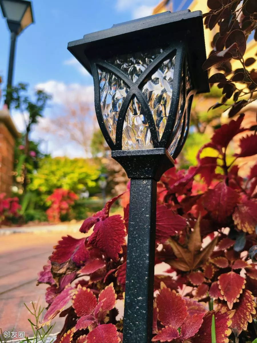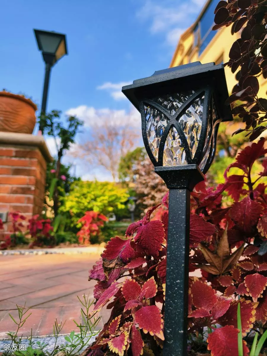 藏在花草间的小地灯,是小区夜晚的星星碎片。
