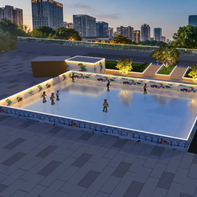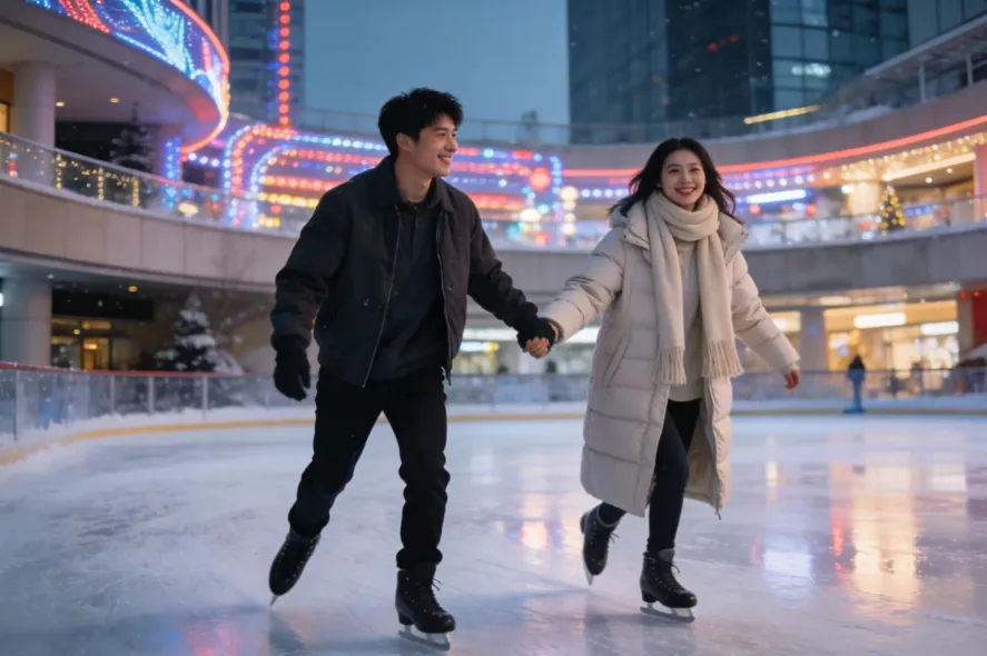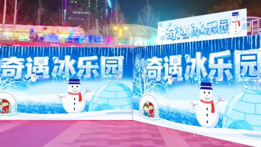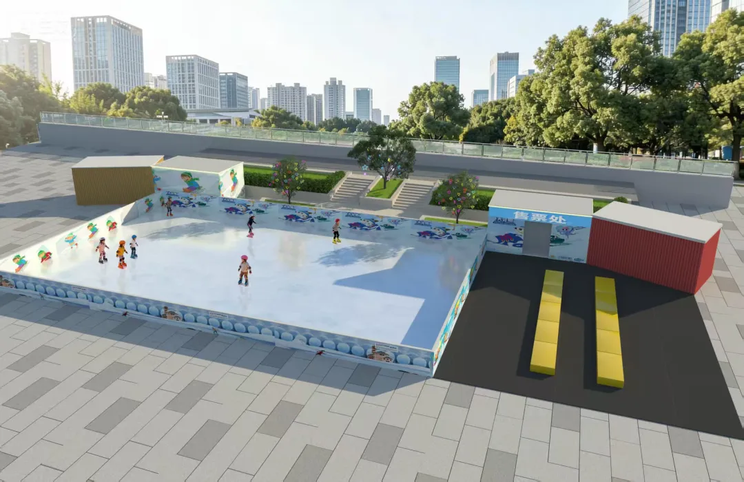 澄澈冰面倒映着商城霓虹与蓝天,脚下是真实冰面的丝滑质感,身旁是家人朋友的欢声笑语;