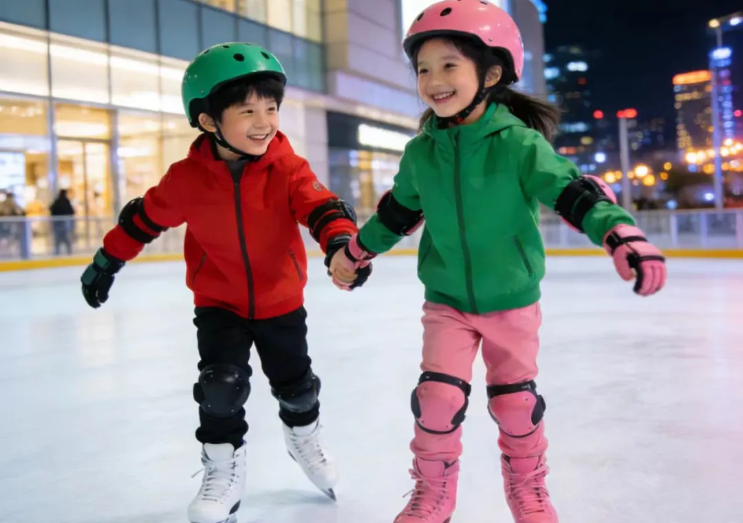 专业平整的真冰场地,更有贴心的配套服务——工作人员每日定时维护冰面,确保滑行安全顺滑;尺码齐全的专业装备适配不同年龄段,让大人小孩都能放心畅玩;
