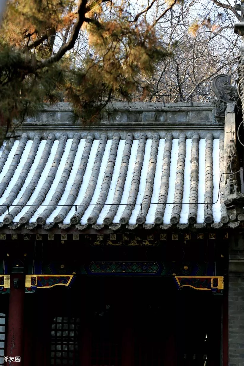 不经意间,会看见红墙映白雪;不经意间,会看见灰瓦留素白。像是被磨淡的岁月,轻轻一抚还能平;像被荒废的古筝,轻轻一掸还有声。