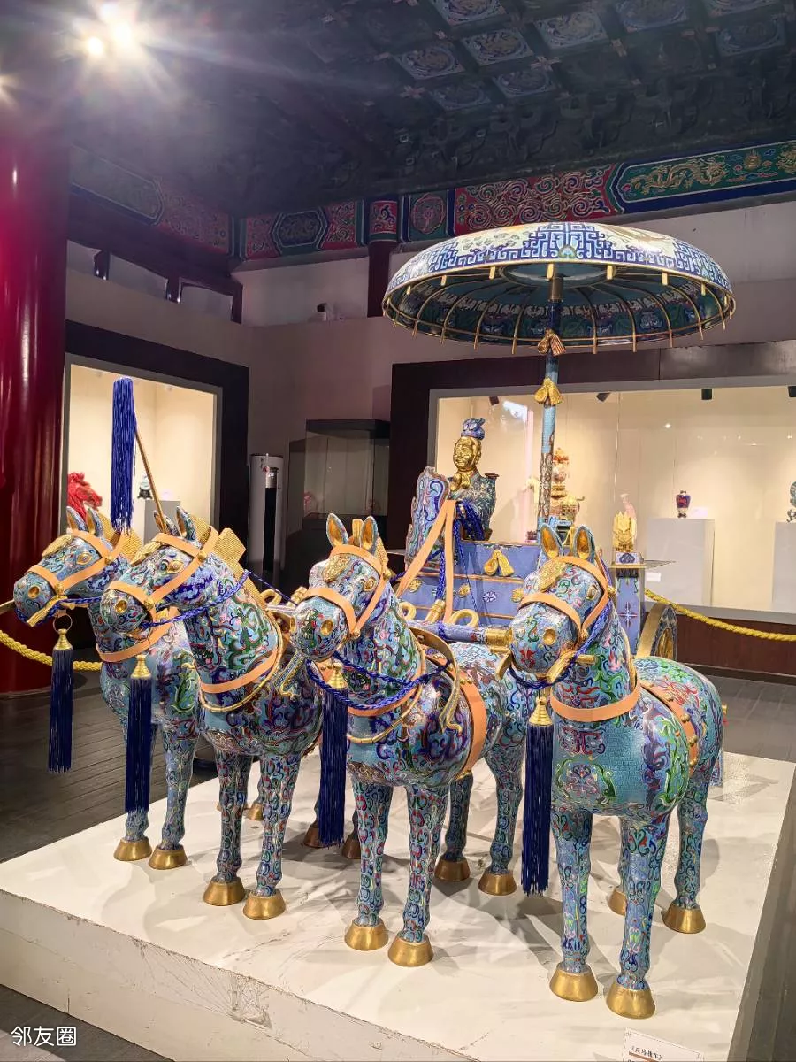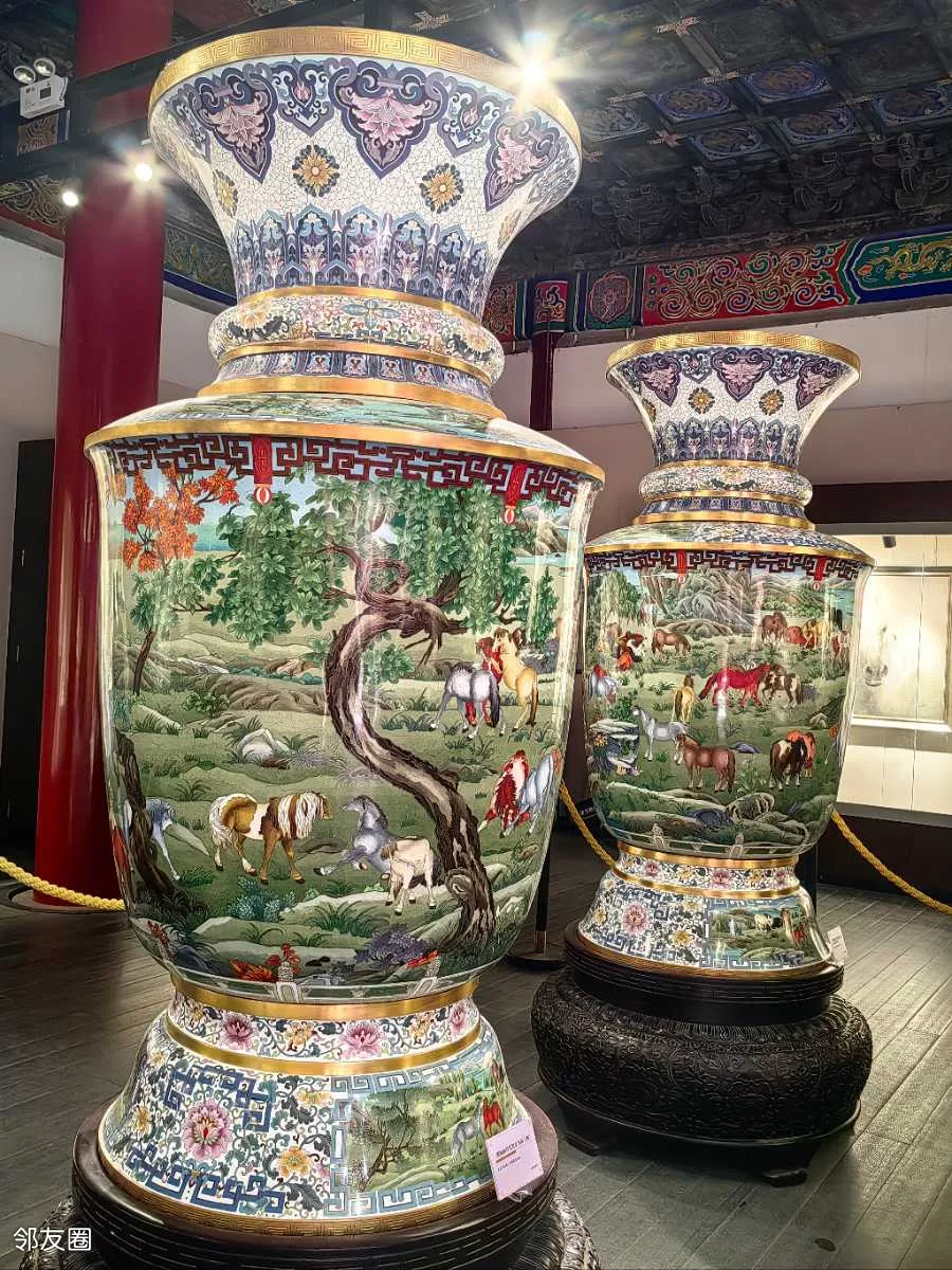 在观德殿这座殿堂里,一件件非遗佳作不再是静止的陈列。它们是"活"的历史,是"暖"的传承。我们仿佛能看到,一匹骏马自《八骏图》中奔腾而出,化作了京绣的金银彩线、景泰蓝的珐琅釉彩、雕漆的层叠朱红、玉雕的温润流光;它跃入剪纸的镂空世界,成为窗格上的灵动剪影;它凝驻于仿古瓷的釉色之中,青花笔意勾勒出追风逐月的诗意……这些凝聚着"燕京八绝"宫廷精粹与民间智慧的技艺,在此刻被传承,与当代审美对话,诉说着"匠心"如何为古老的灵魂注入崭新的生命力。