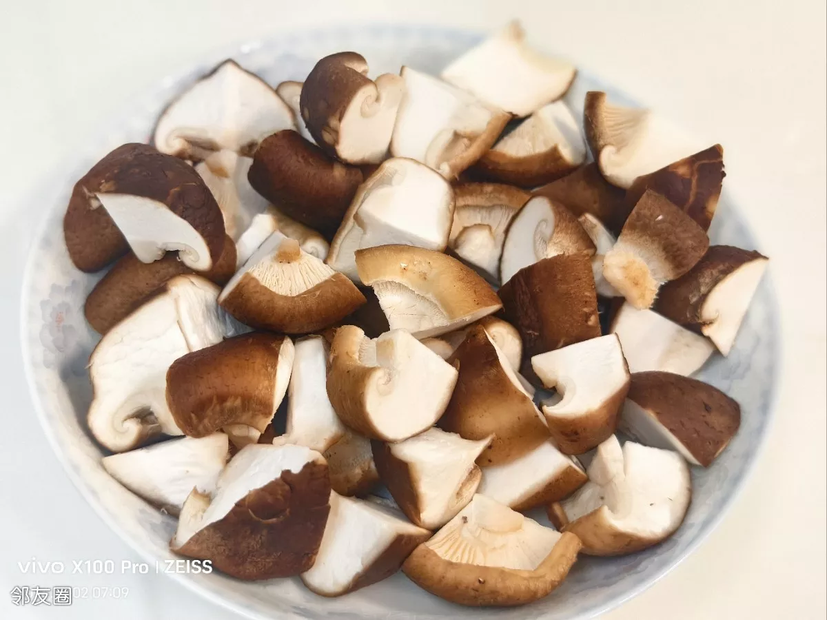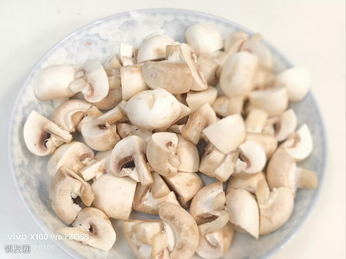 大蒜切成小块,香菇和口蘑切成滚刀块备用!