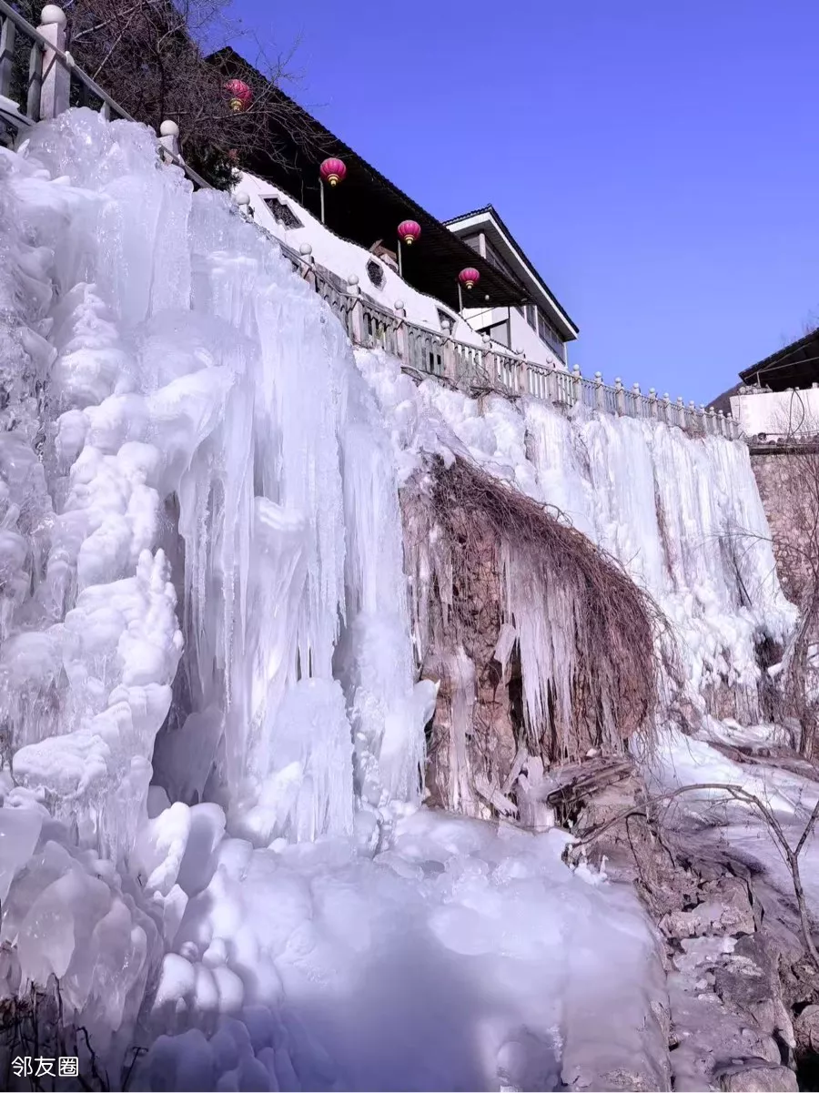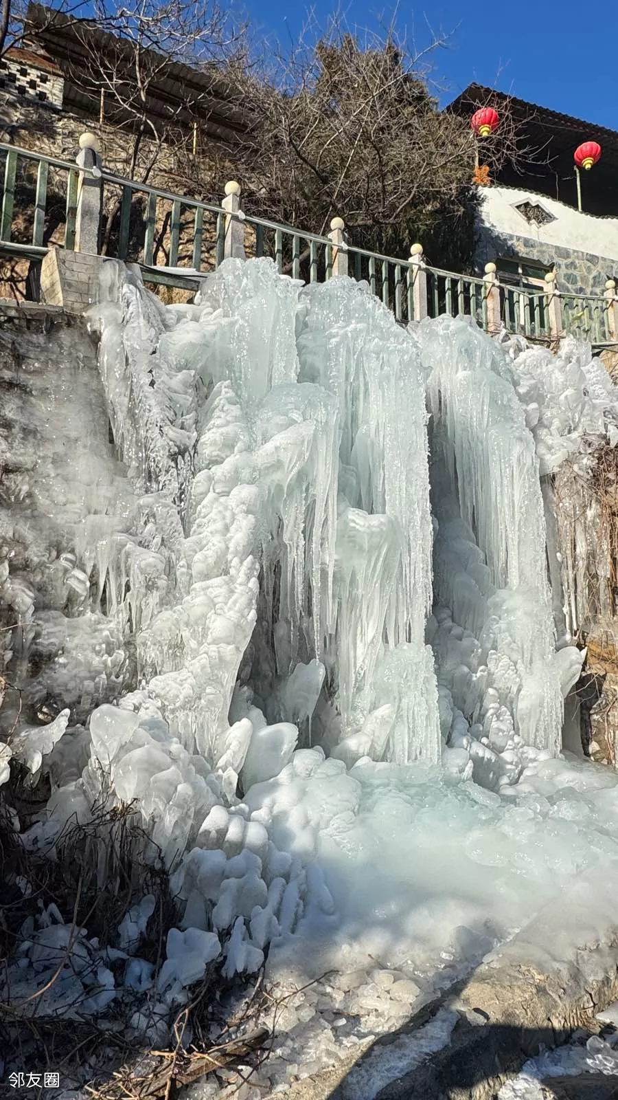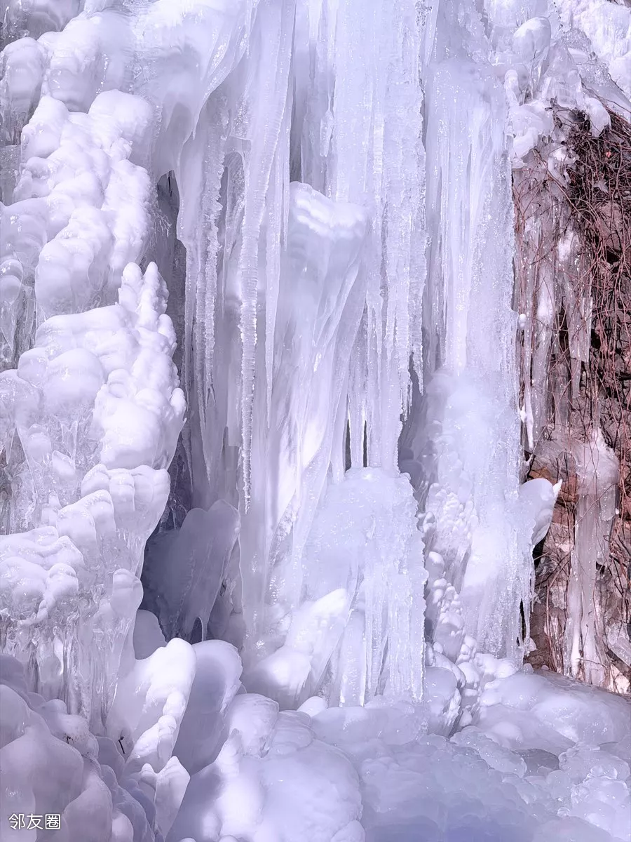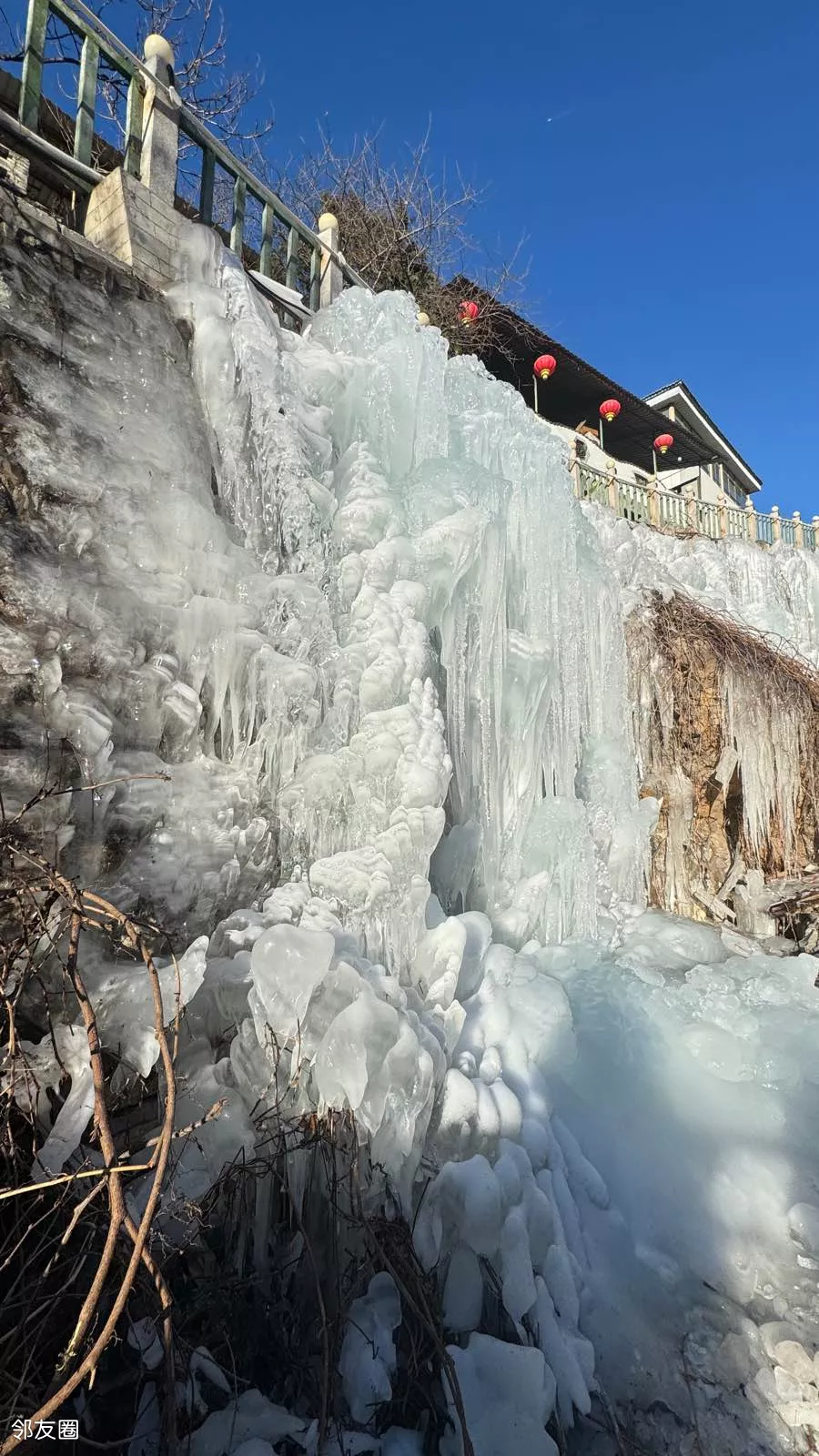 冰溜子垂挂成帘,冰川在阳光下闪着光。登高望远,风是冷的,景是绝的,每一眼都是冬日限定的治愈。