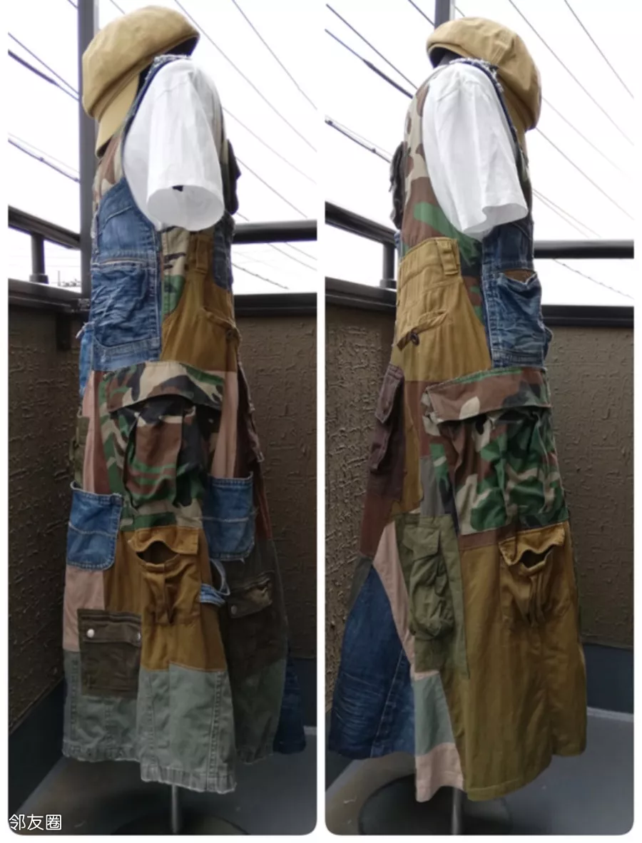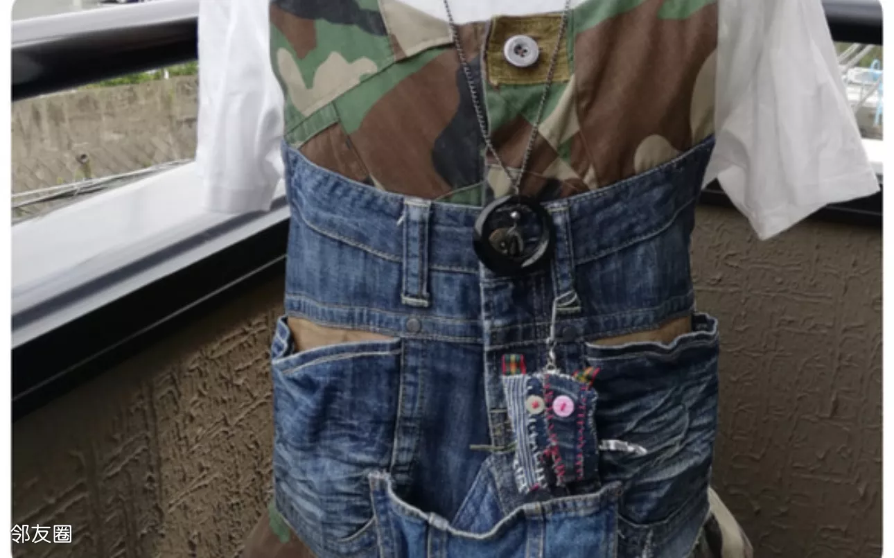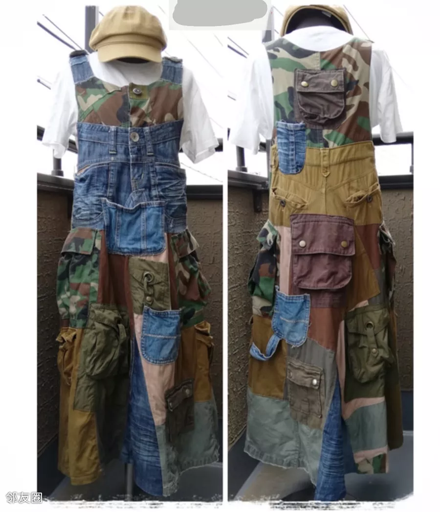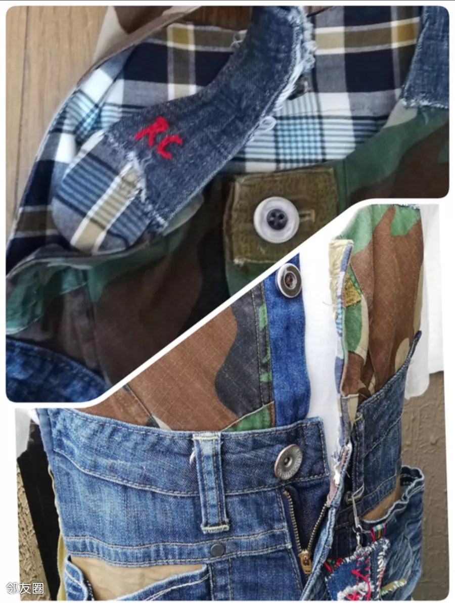 用各类旧牛仔衣库拼凑改造的。