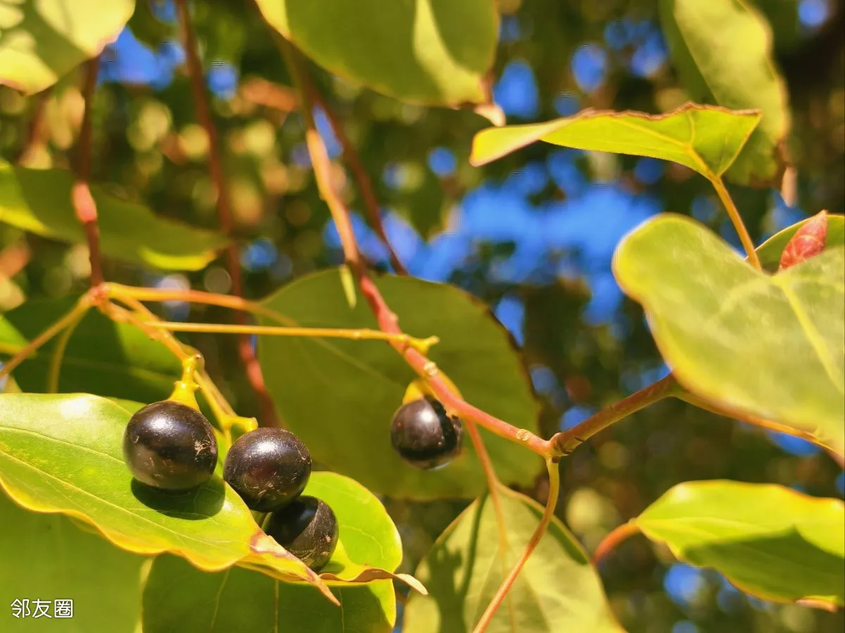 在靖江冬天的暖阳温柔地斜照下来,藏在深绿叶片间的小黑豆,被晒得油亮油亮的,像撒了一把细碎的黑珍珠。雨后的樟树子风一吹,珠子轻轻晃,是专属于冬日的小巧思,您喜欢吗?
