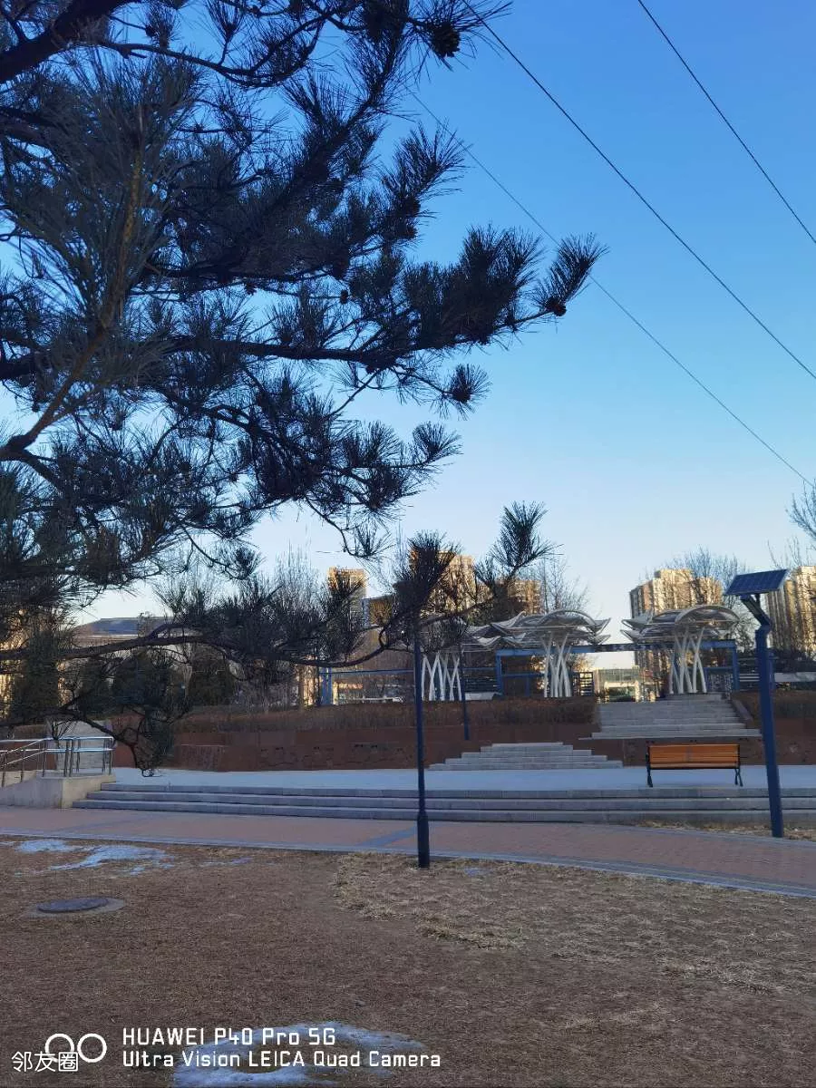 吃过早餐九点钟左右室外温度零下四度,不感觉很冷。天气晴朗,空气清新。