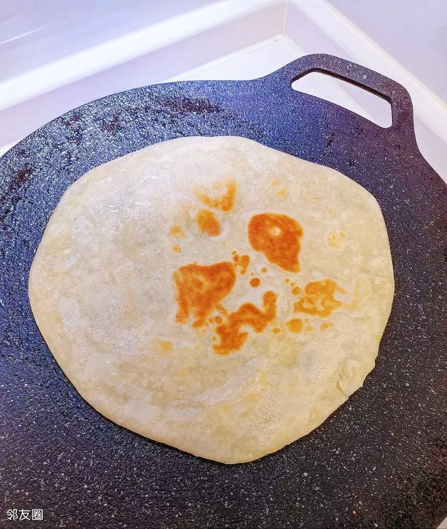 简易款酱香饼。鸡蛋灌饼饼胚,平底锅,刷酱