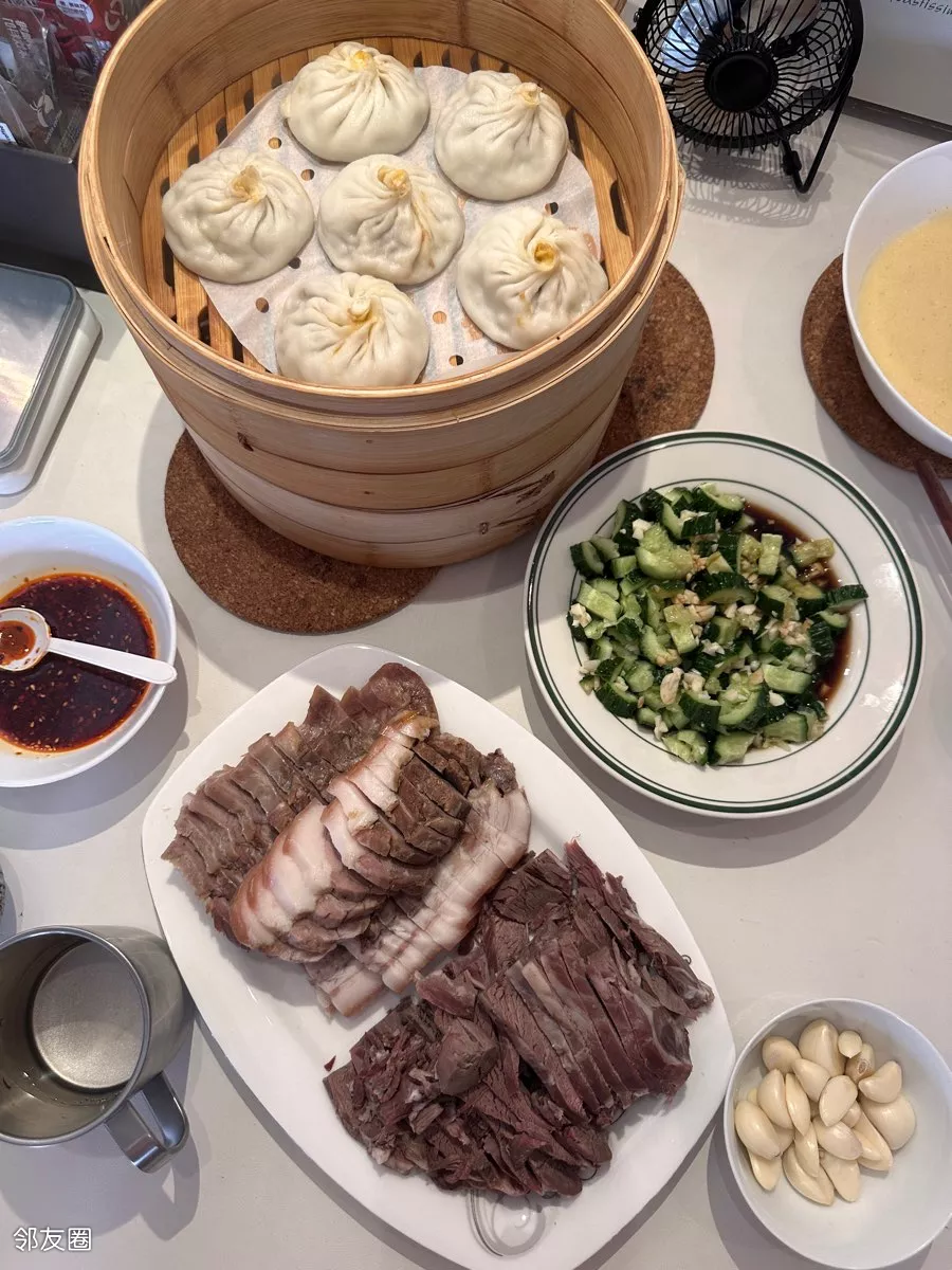 剥了两头蒜🧄,天津的独流醋和西安的油泼辣子调了个碗汁