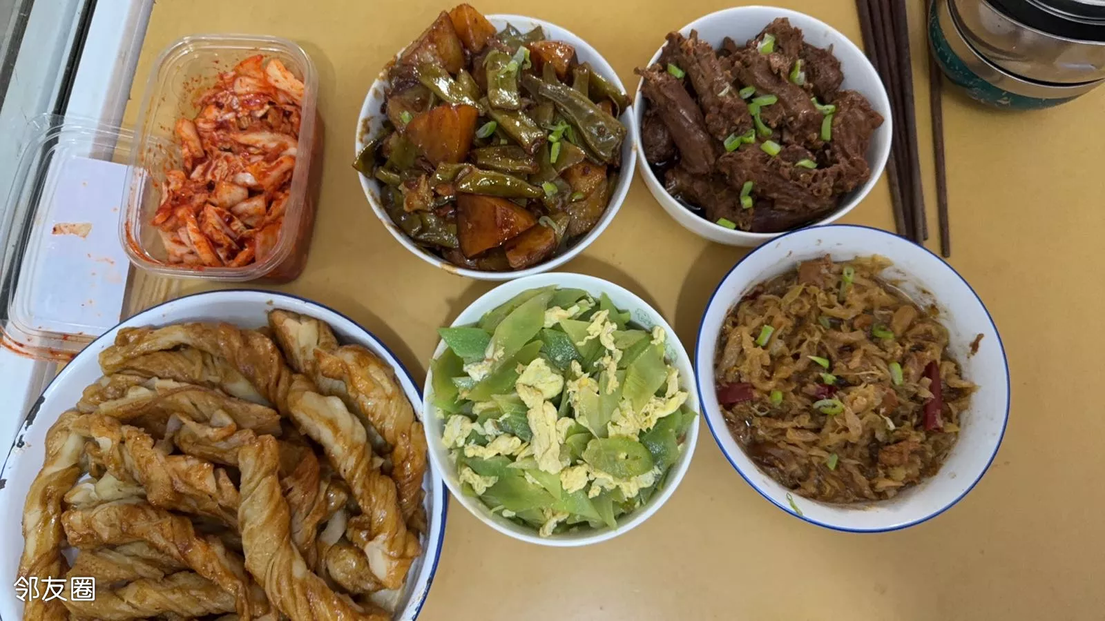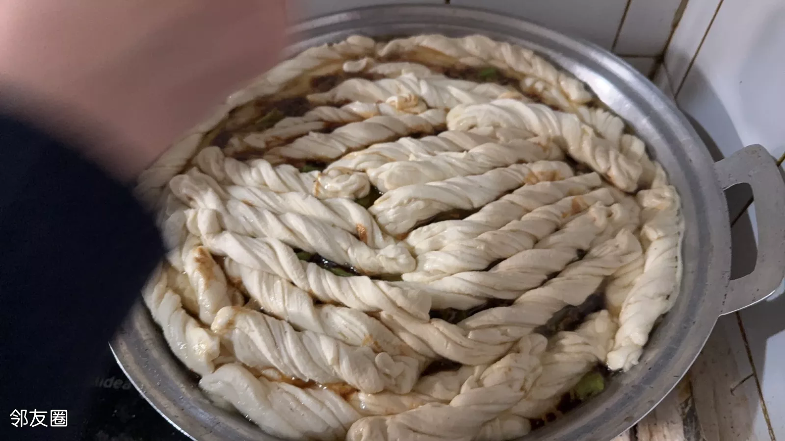 嗯,表面卷子下面豆角五花肉土豆,很地道