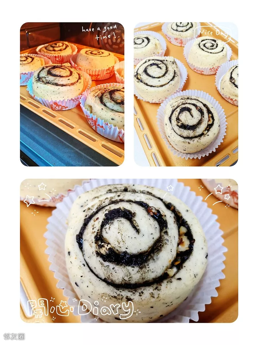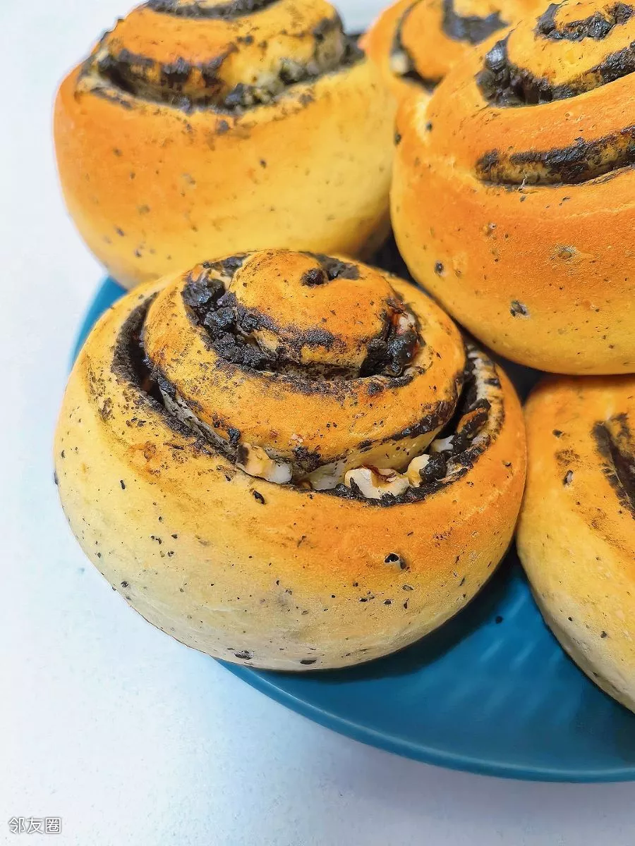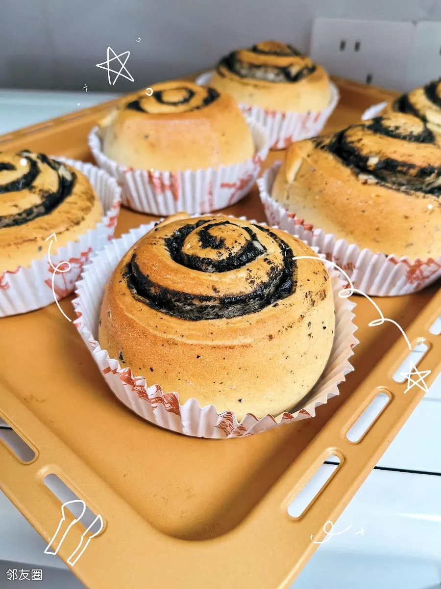 准备早餐……黑芝麻核桃仁面包卷😊