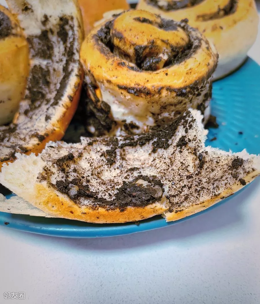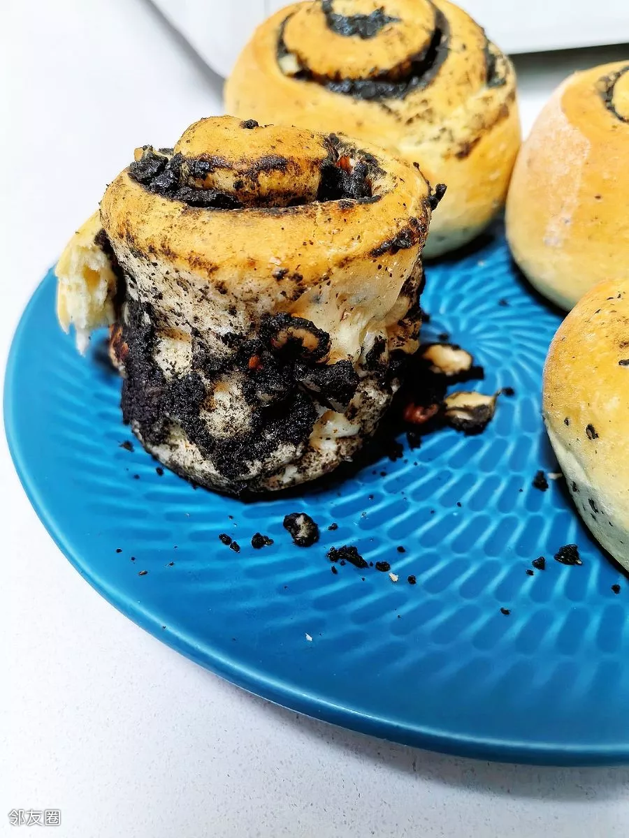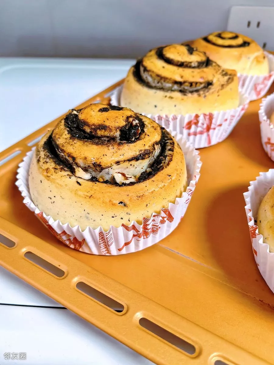 准备早餐……黑芝麻核桃仁面包卷😊