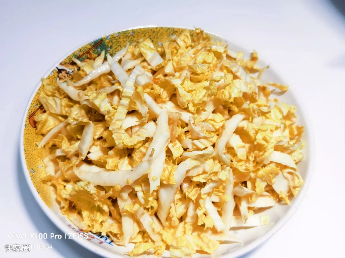 放凉以后加入25克葱,红薯淀粉150克,面粉50克,馒头碎80克,蒜80克,姜粉10克,蛋黄2个,盐10克,胡椒粉2克