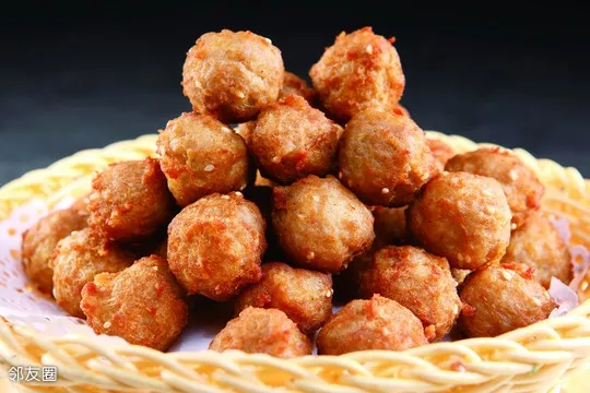 四成油温下丸子,油温过高里面炸不熟,开始不要翻动它,完全定型以后再搅动它,小火慢炸才能炸透炸酥!