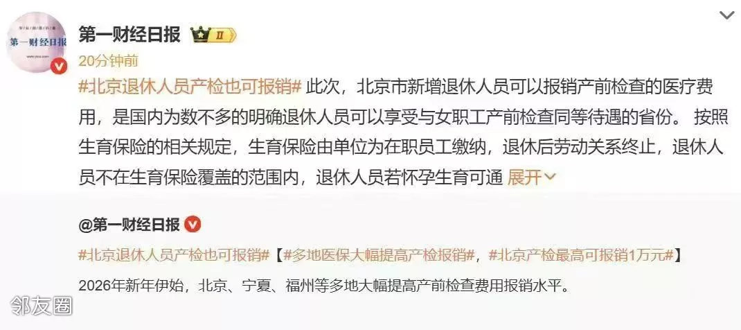 前两天公布的给退休人员报销产前检查费用是有道理的,这不,59