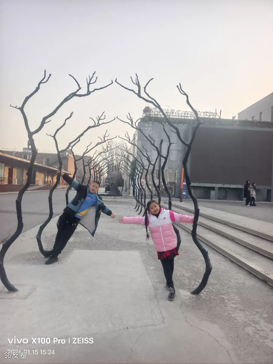 今天是这个学期的最后半天,中午就放学了,带着孩子们去东岳饭庄吃烤鸭,然后再去798溜食儿