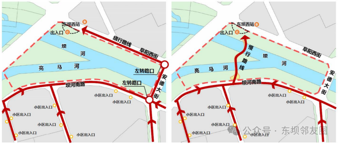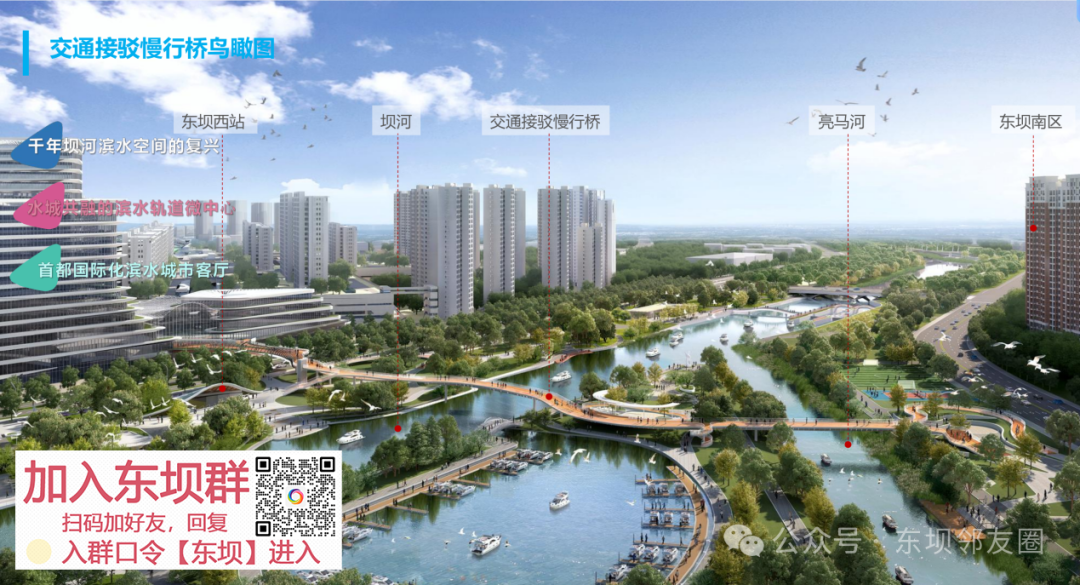 最重要的是能大幅缩短出行距离!从这张对比图里能清晰看到,现在居民从东坝南区去东坝西站,要沿着河边绕一大圈;而慢行桥建成后,直接跨河直达,1.4公里的绕行距离直接省下来,单程就能少花十几分钟,对于日常通勤的邻居来说,真是实打实的便利!