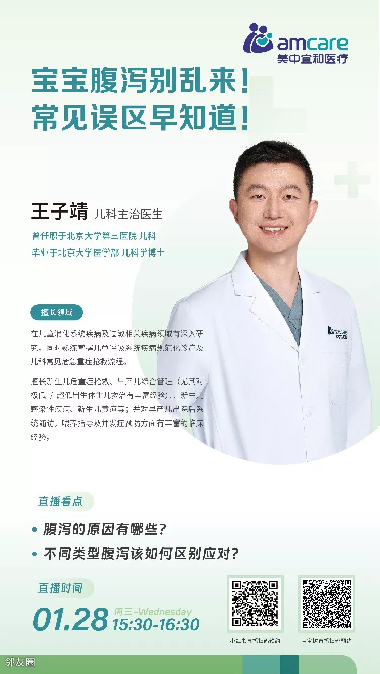腹泻的原因有哪些?不同类型腹泻该如何区别应对?1月28日(周三) 15:30-16:30由北京宜和医院儿科王子靖医生为您带来宝宝腹泻专题直播~欢迎收看!