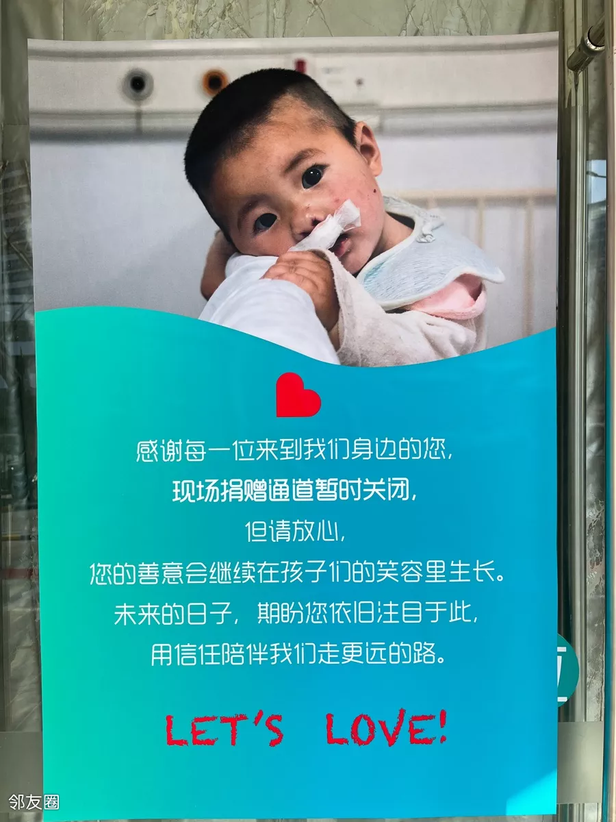 周末跟老公聊起这件事,老爷们被感动了,非要去给嫣然捐500块钱。今天中午送我过去捐款,结果门口保安说暂不接受现场捐款了,让我看看门口的告示。