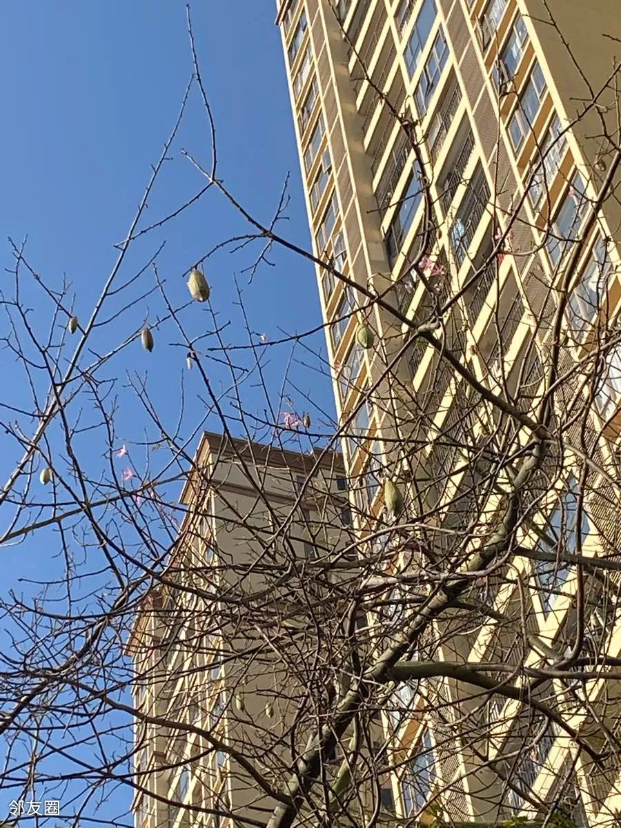 据亲说 这个是木棉树 看着像树上结了个瓜。