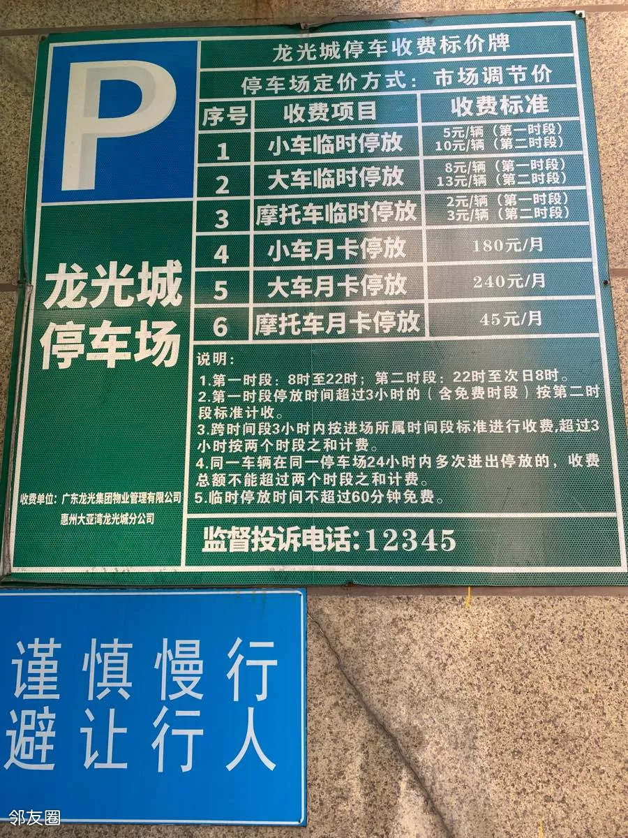 停在小区里 停车收费标准如上图