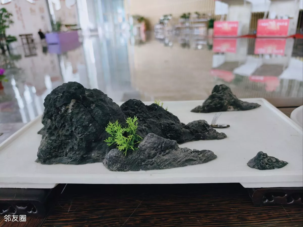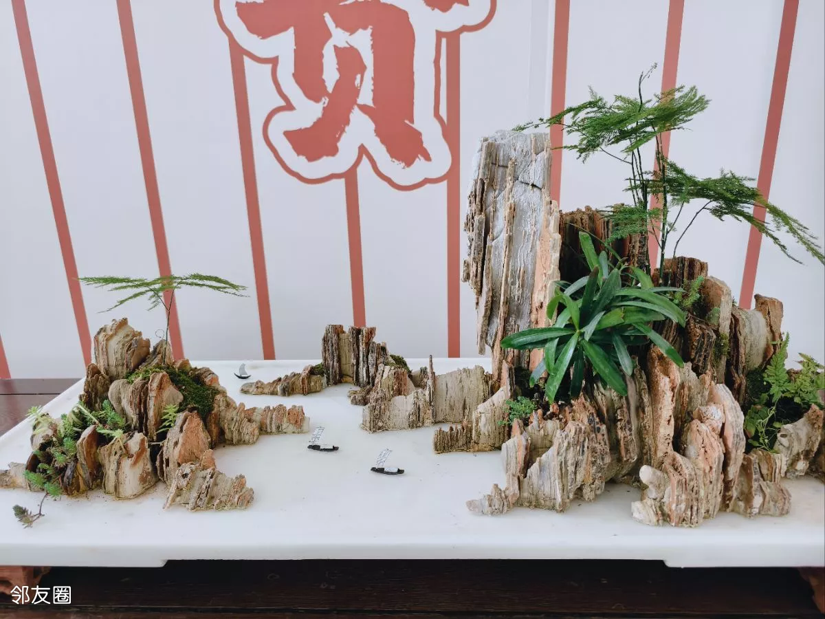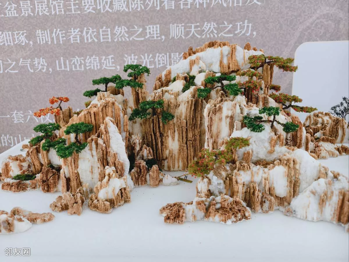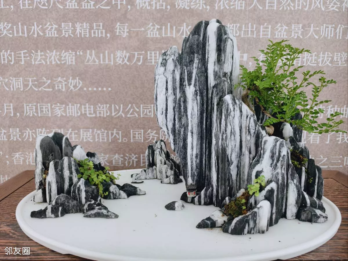看到的山水盆景都是常用的斧劈石、千层石、芦管石等,以“缩龙成寸、小中见大”的手法,山石为骨、水体为脉、草木为魂的匠心制作,实在是太美了。