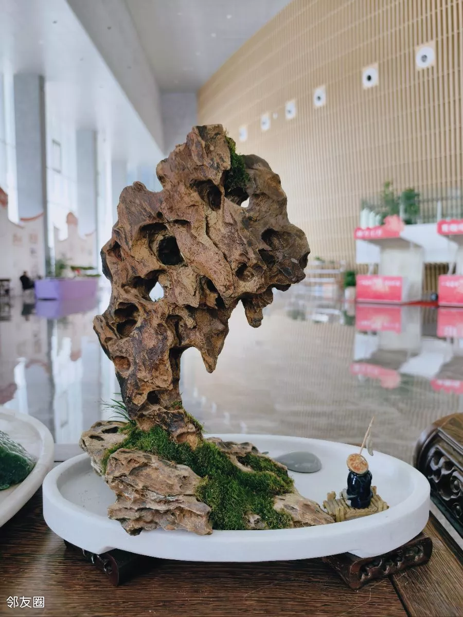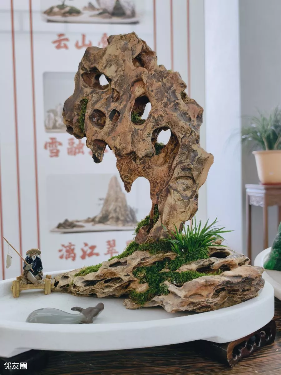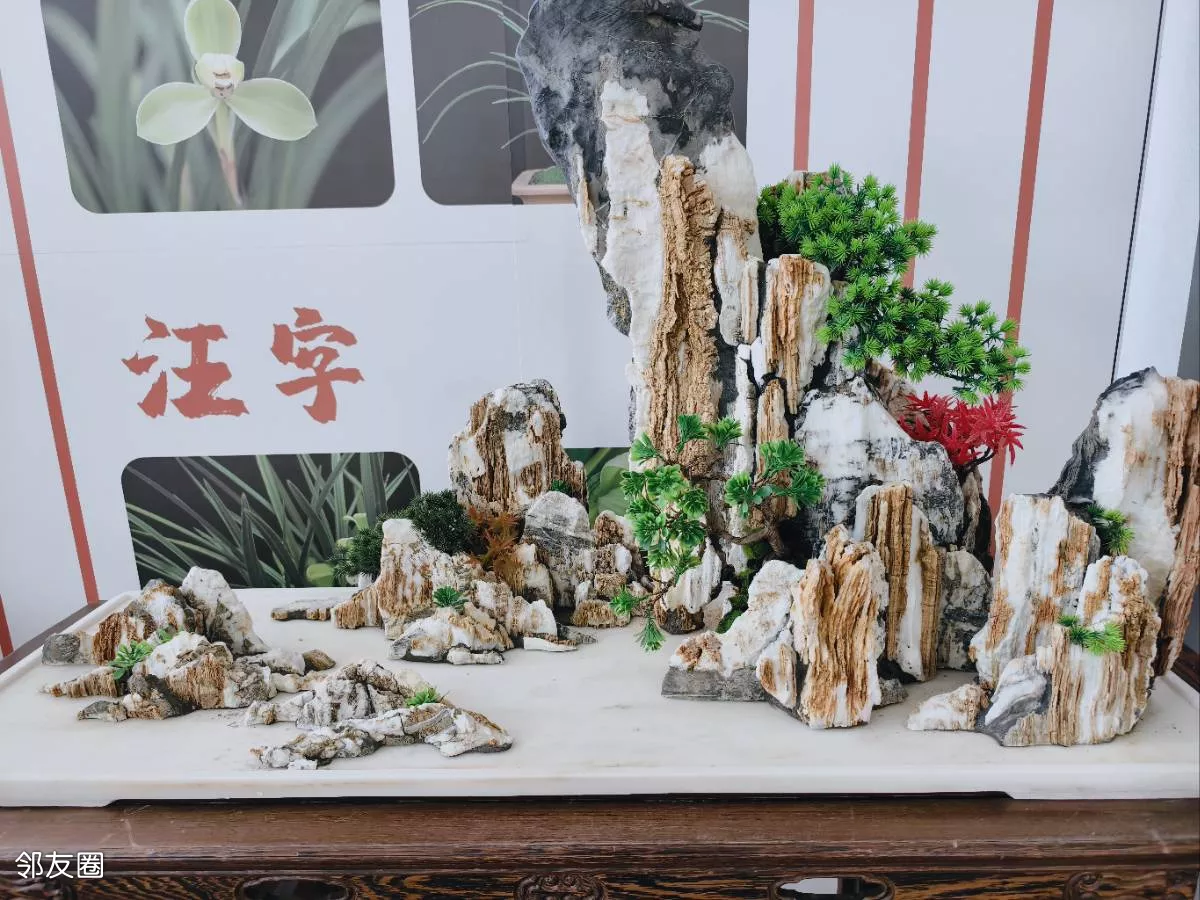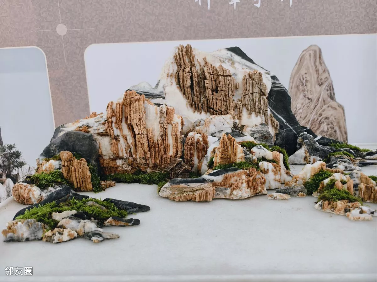 看到的山水盆景都是常用的斧劈石、千层石、芦管石等,以“缩龙成寸、小中见大”的手法,山石为骨、水体为脉、草木为魂的匠心制作,实在是太美了。