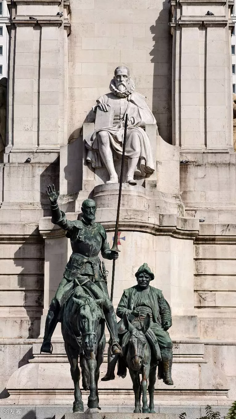 下图中是马德里的塞万提斯雕像,骑马的是堂吉诃德