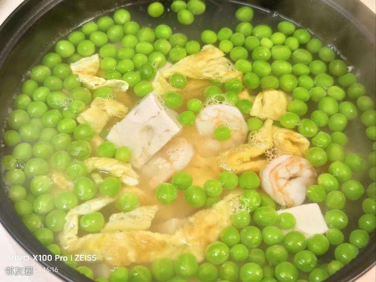 家常小汤~豌豆虾仁豆腐汤