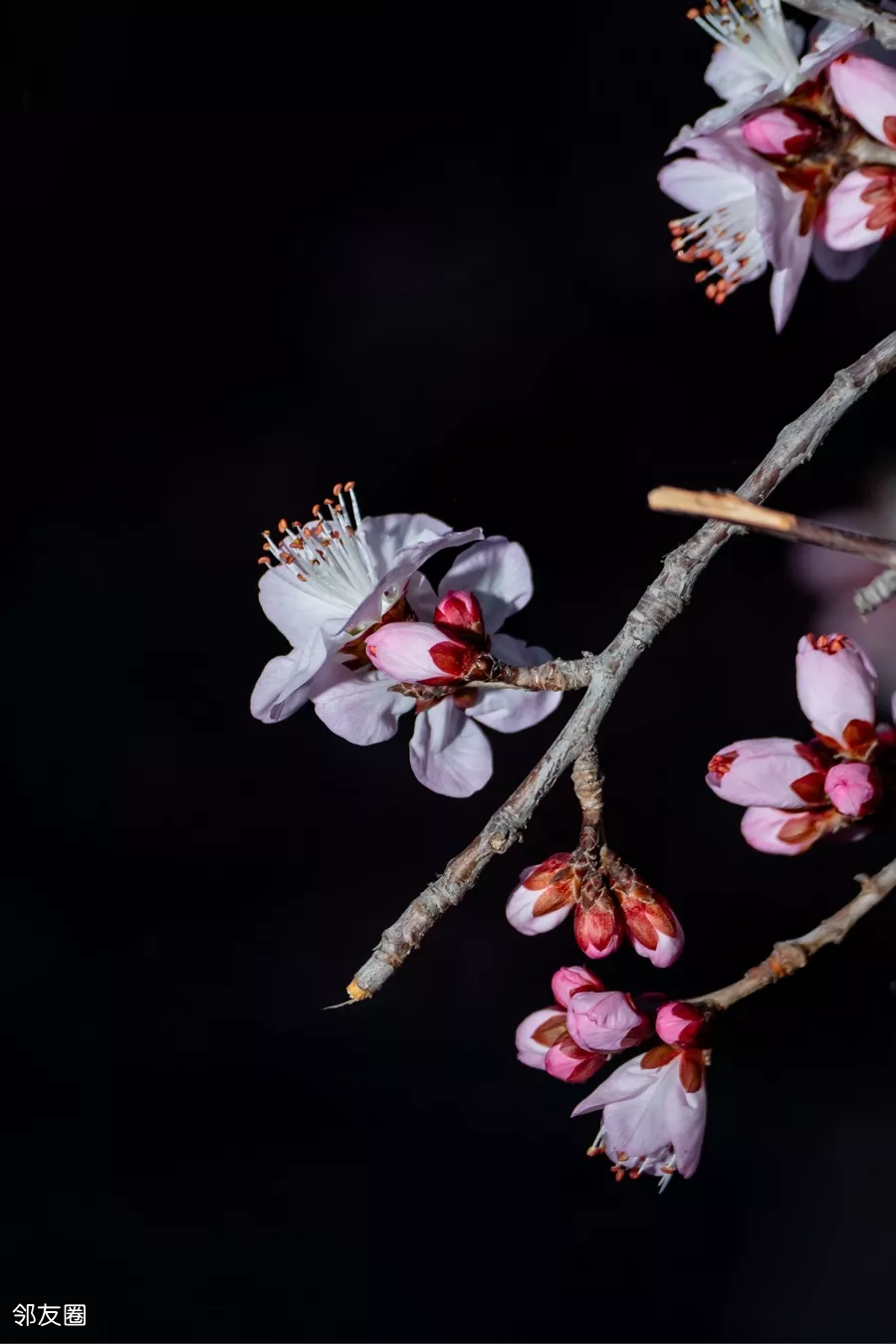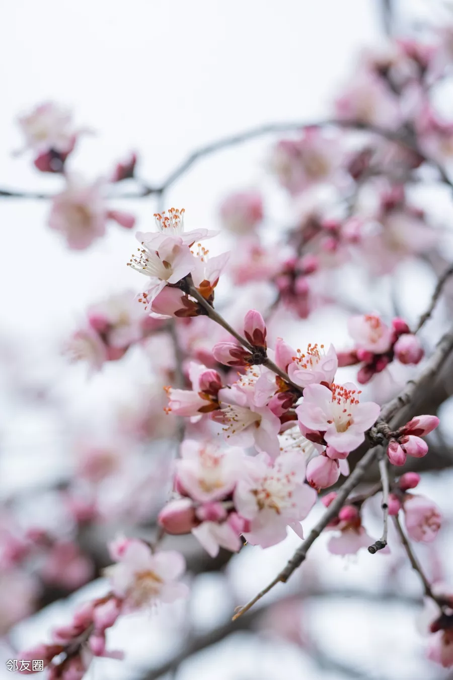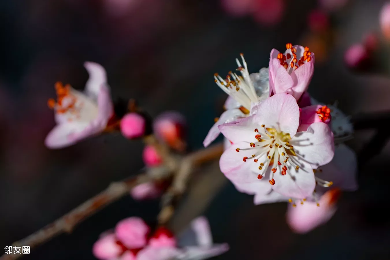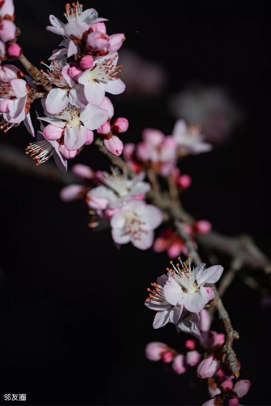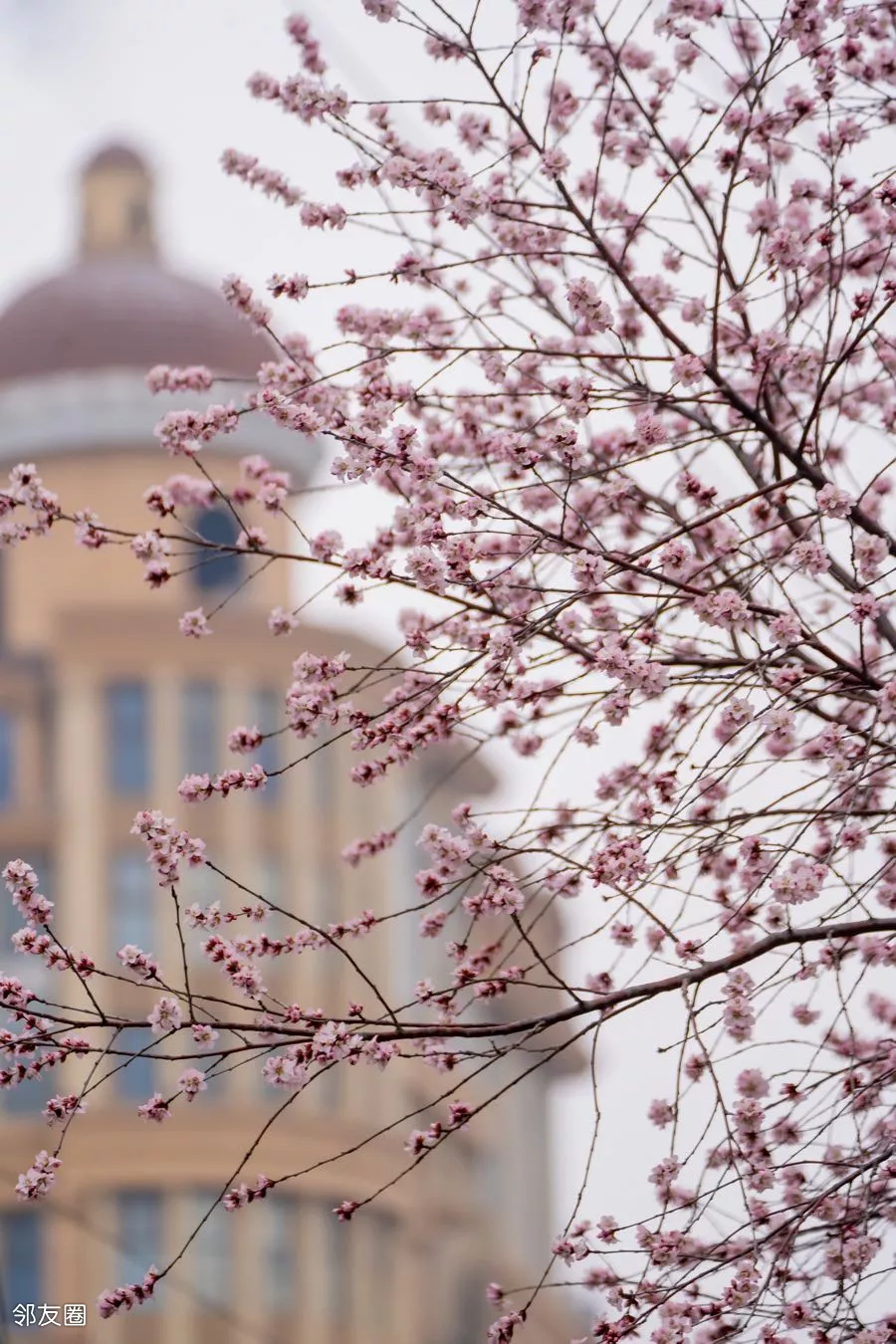 3月4日十里堡桃花溪实拍,山桃刚冒头就撞上了春雪,粉白花瓣裹着薄雪,一半春意一半冬韵,直接美成诗词里的意境!