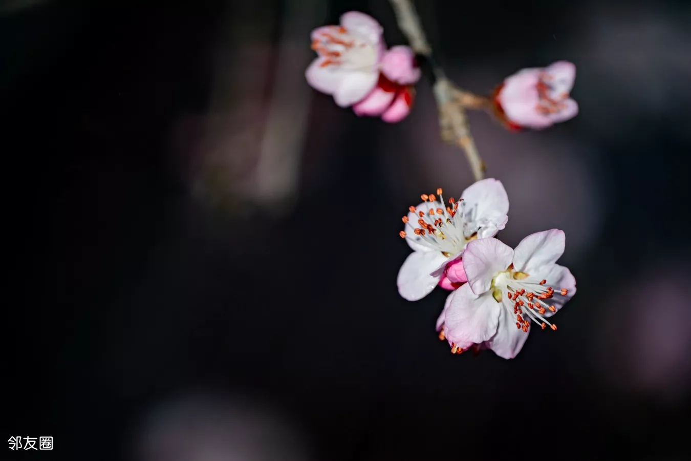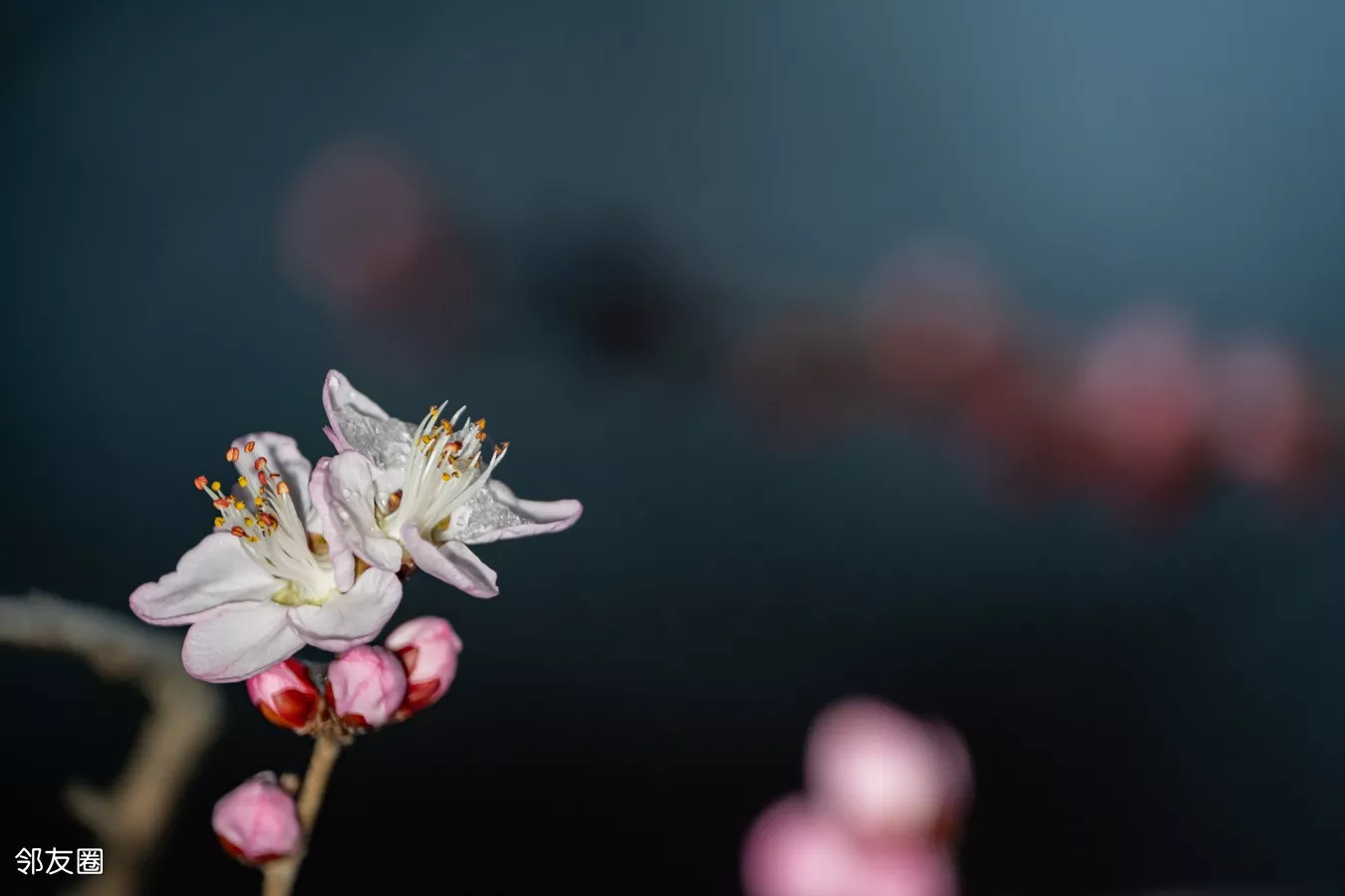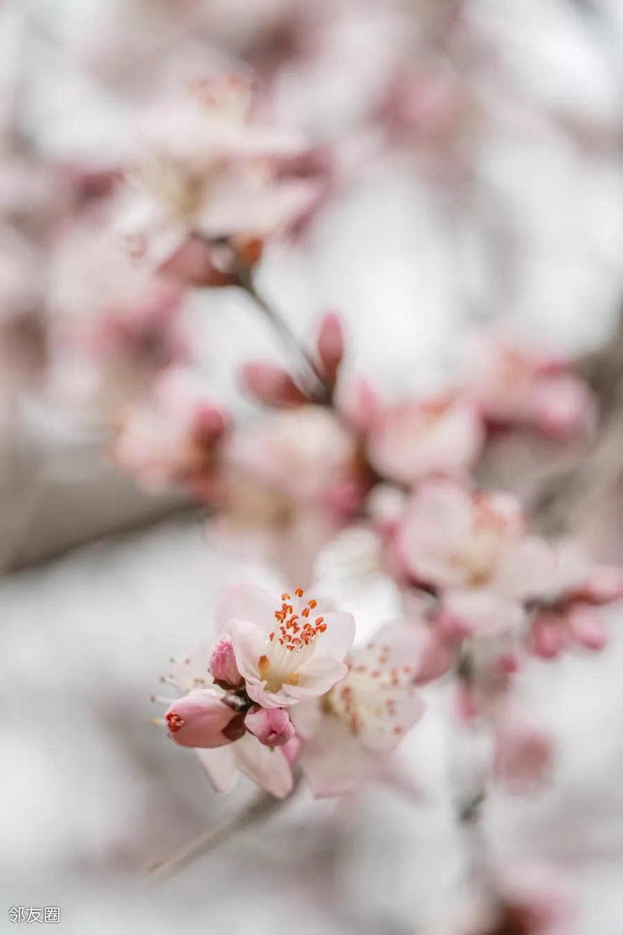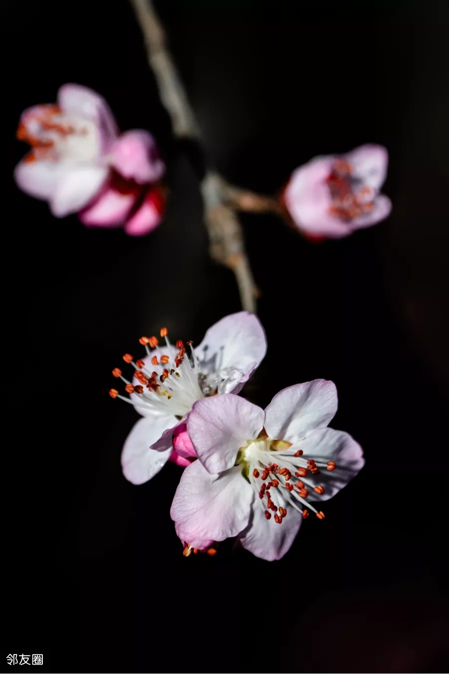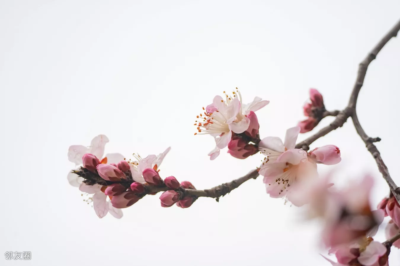 3月4日十里堡桃花溪实拍,山桃刚冒头就撞上了春雪,粉白花瓣裹着薄雪,一半春意一半冬韵,直接美成诗词里的意境!