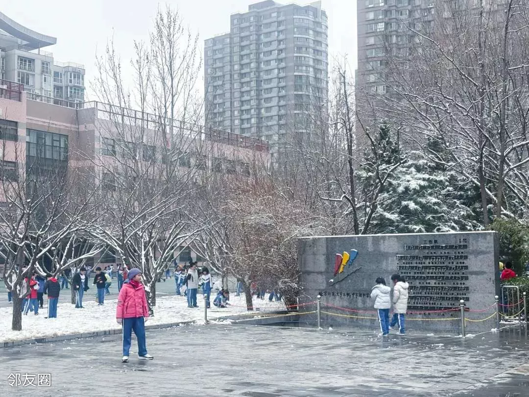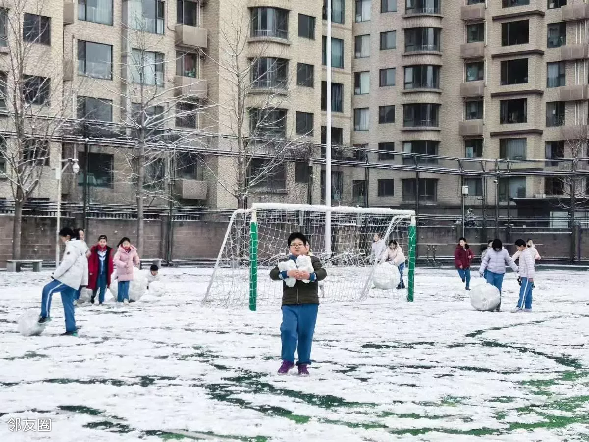 下雪了,孩子们最开心了,北京师范大学三帆中学朝阳学校鼓励孩子们走到户外,在雪中品味大课间的乐趣,这就是平等,开放,绿色,自由的教育理念👍🏻
