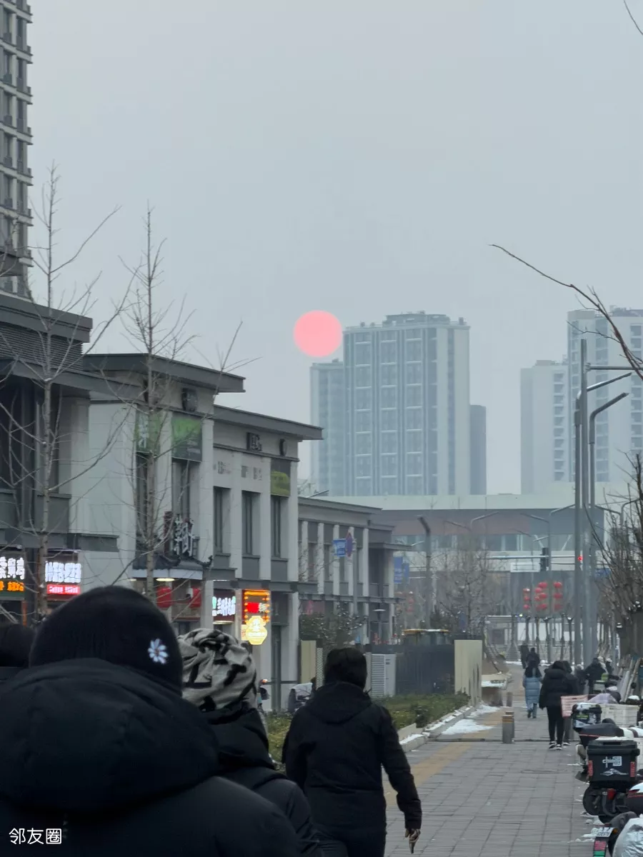 出了地铁口一抬头,看见了红日
