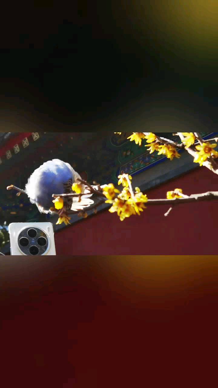 昨儿在卧佛寺里赏拍闻腊梅,突然看到一群人在围着一棵腊梅树,走近了一看,原来是一只漂亮的小鸟立在腊梅枝头,赶紧找个空挡也蹭拍蹭拍