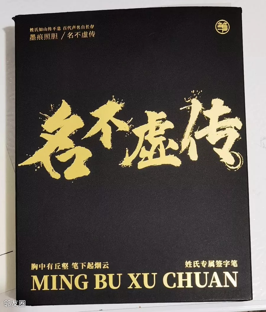 是啊,一节是黑檀木,一节是不锈钢,要提前预订,在工厂刻名,包装盒袋上都是名的笔画