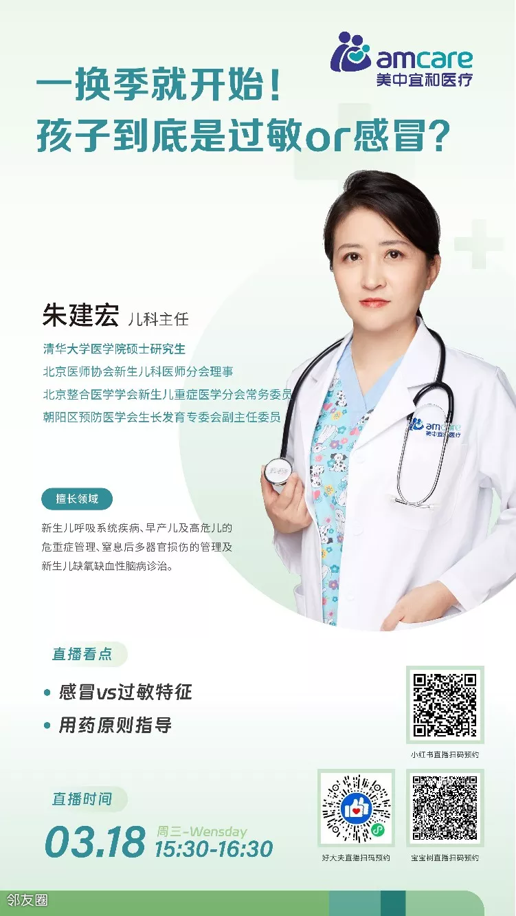 一到换季就开始!孩子打喷嚏咳嗽,肠胃不适,这是感冒特征还是过敏特征?又该分别怎么用药呢?3月18日(周三)15:30-16:30 由北京宜和医院朱建宏主任来帮您解答疑惑~欢迎关注收看~