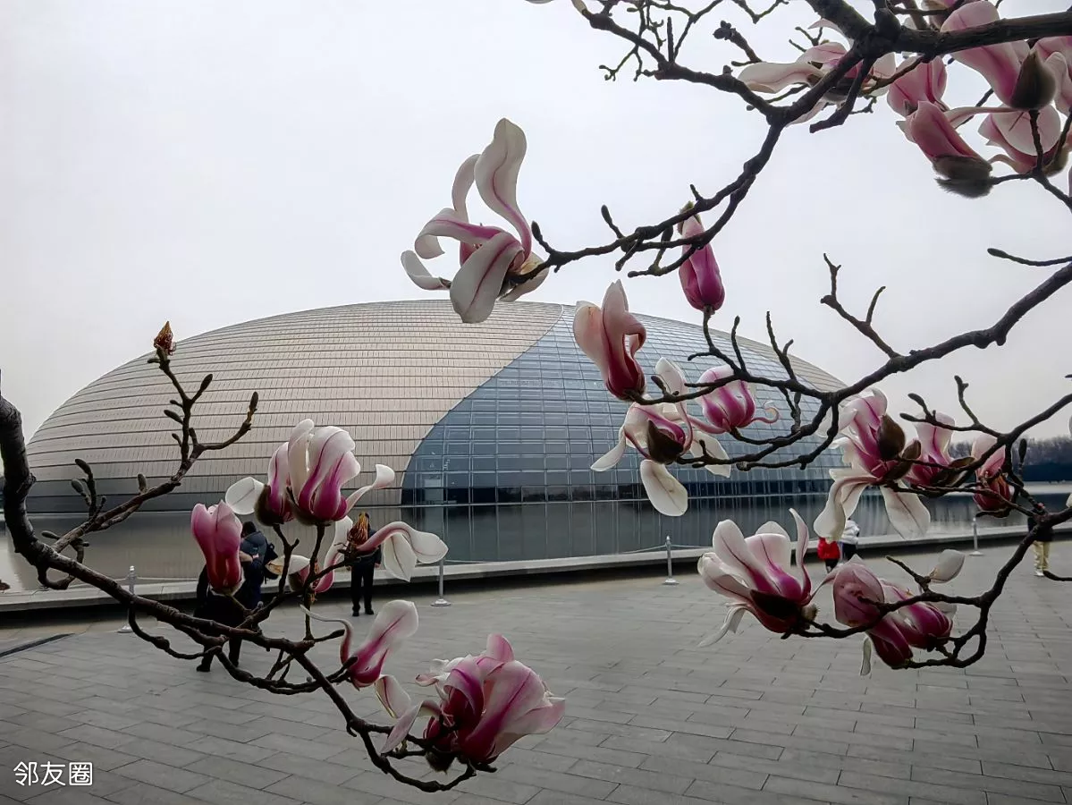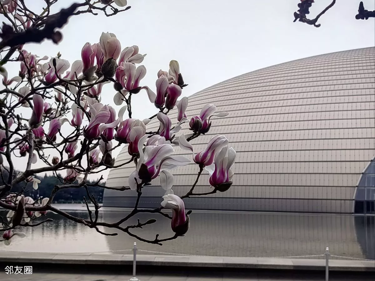 国家大剧院这里的几棵玉兰树当初栽种的时候可能绝没想到它们会成为自己花期时节的网红吧,就这么好巧不巧的被发现,被传播,被围观了,是喜是悲只有它们自己知道吧~