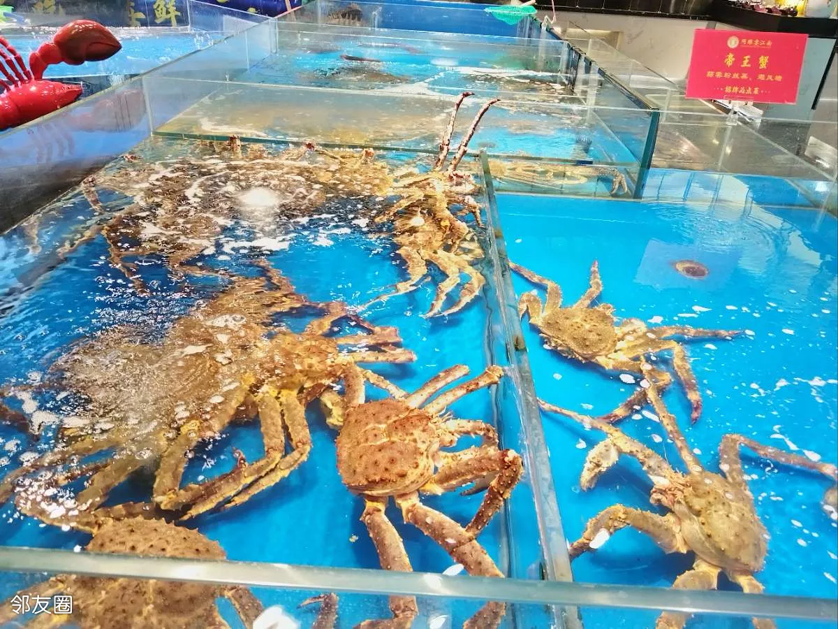 昨天去大兴参加朋友生日宴,发现一家不错的餐厅,同乐宴·江南。一进门,就看到帝王蟹池子,还有各种食材,看着食材点菜那种。环境雅致,菜品精致。