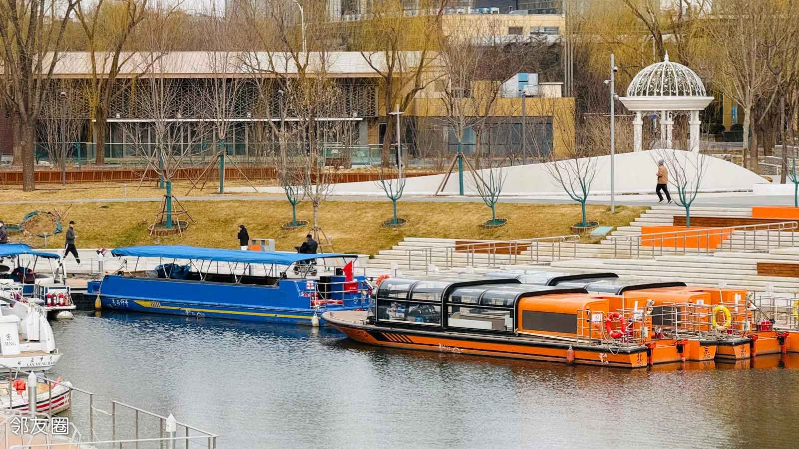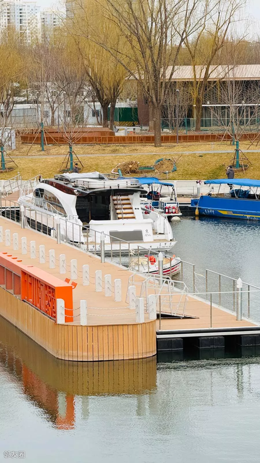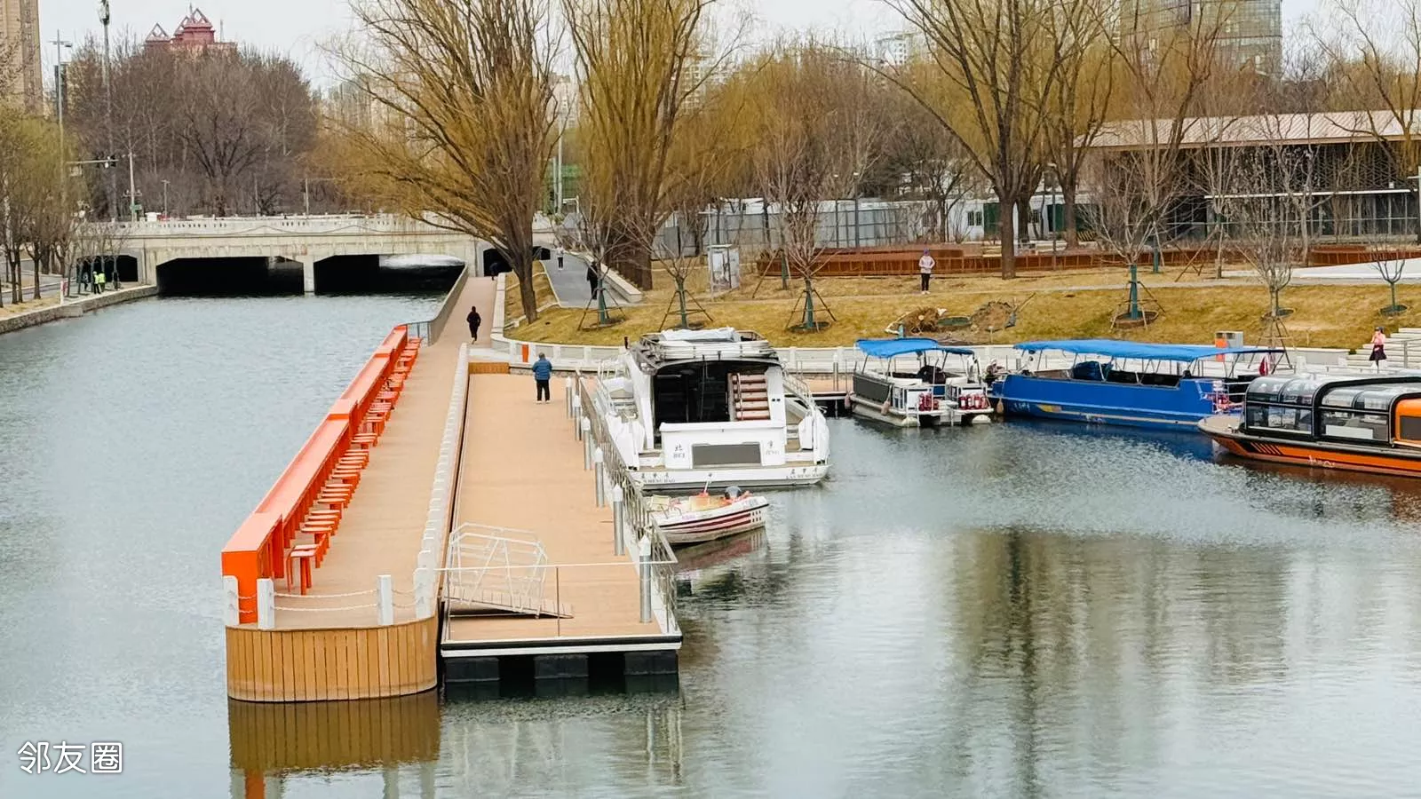 站在桥上,眺望北小河停靠的游船,颜色鲜亮,肯定成为北小河一道靓丽流动的景象。