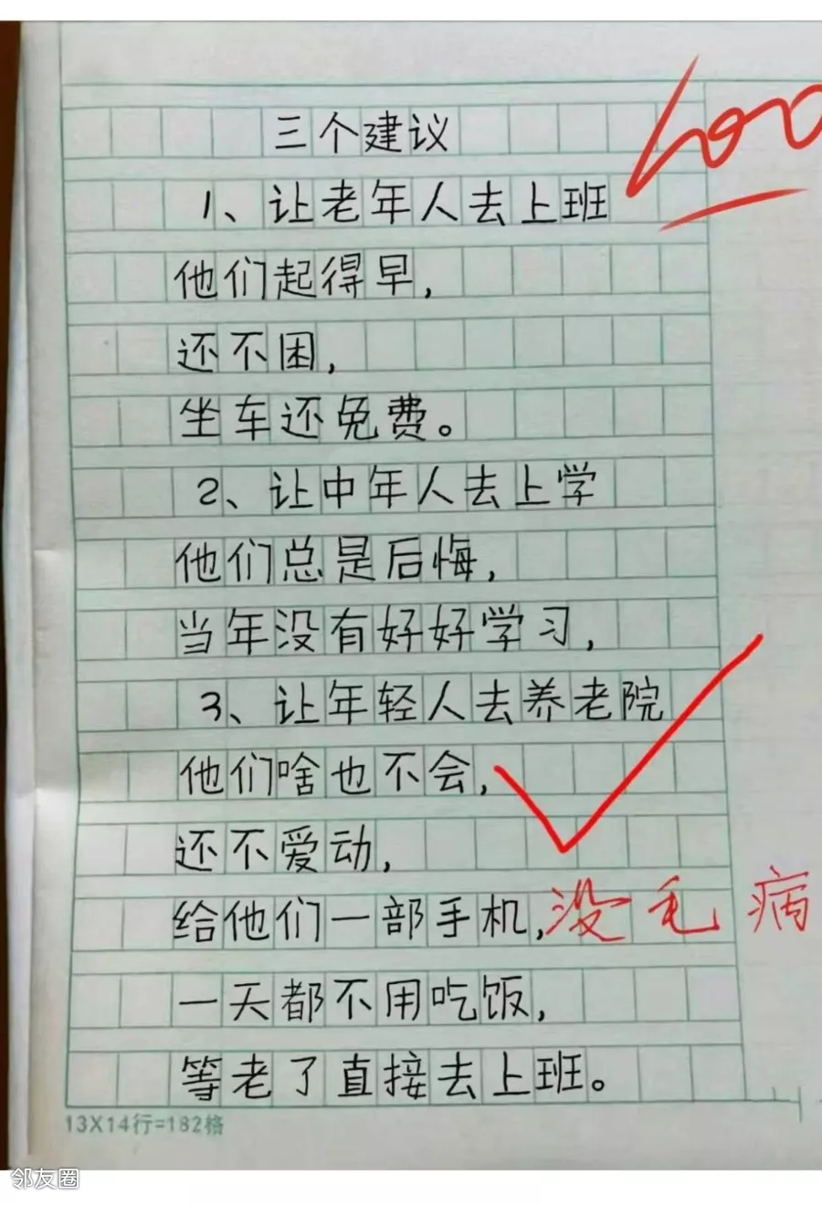 一个小学生写的作文太有意思了