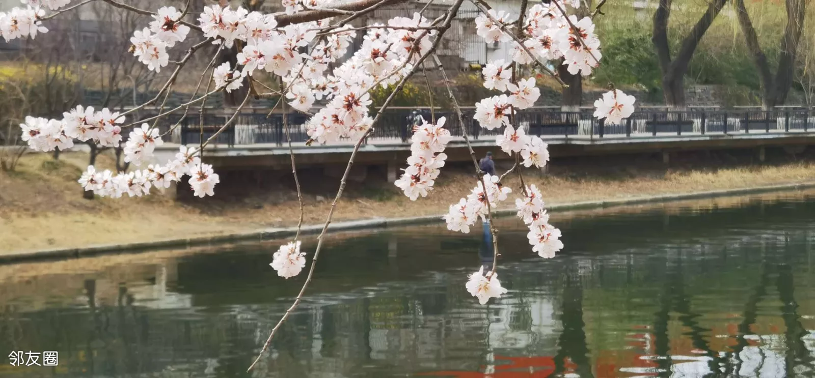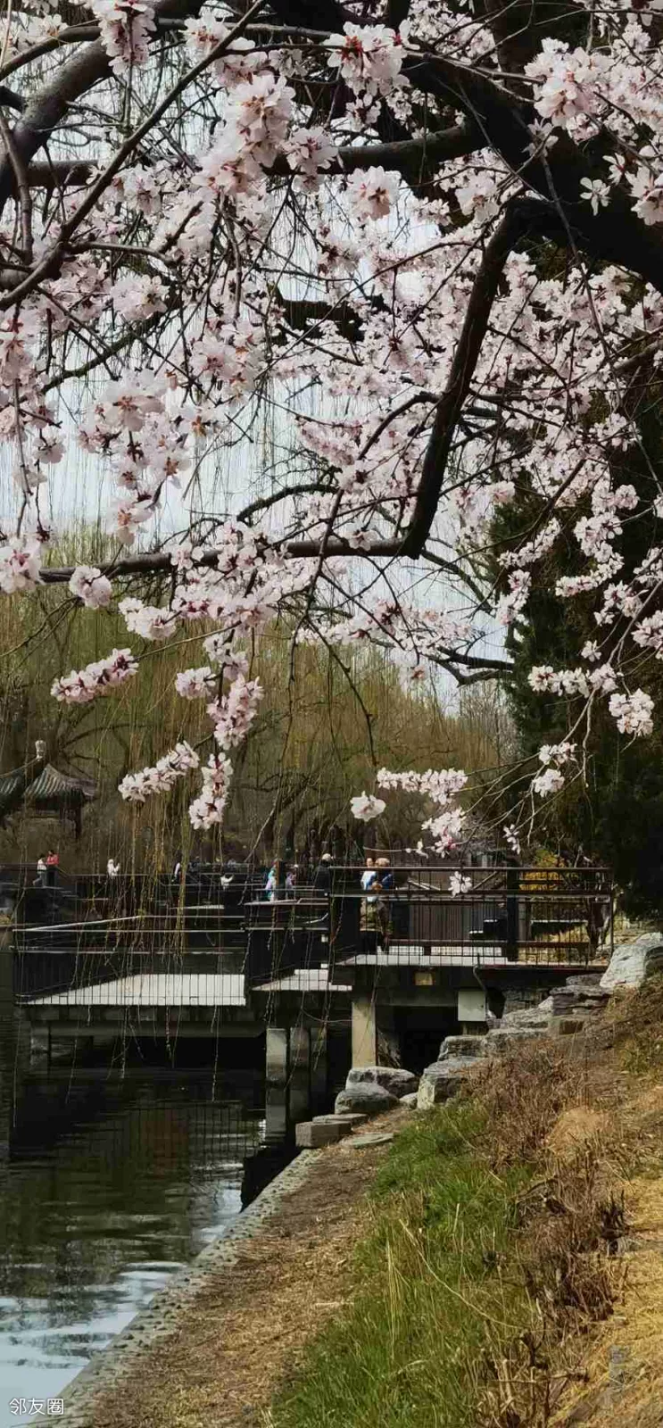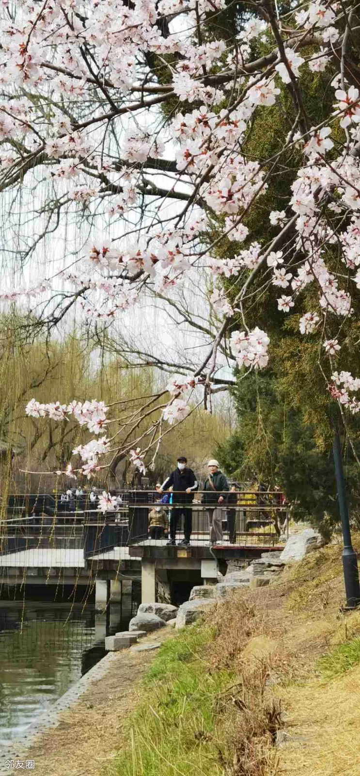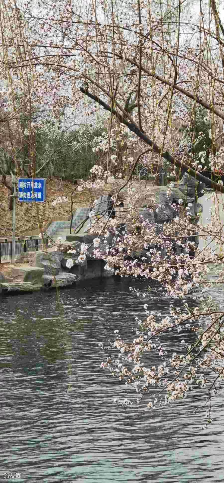 前几天坐车路过就看到安定门西滨河路山桃花一片,所以昨天在亮马河东城段赏花结束,立马继续西行,在雍和宫东下车后沿着河岸一路向西!越走越惊喜啊!